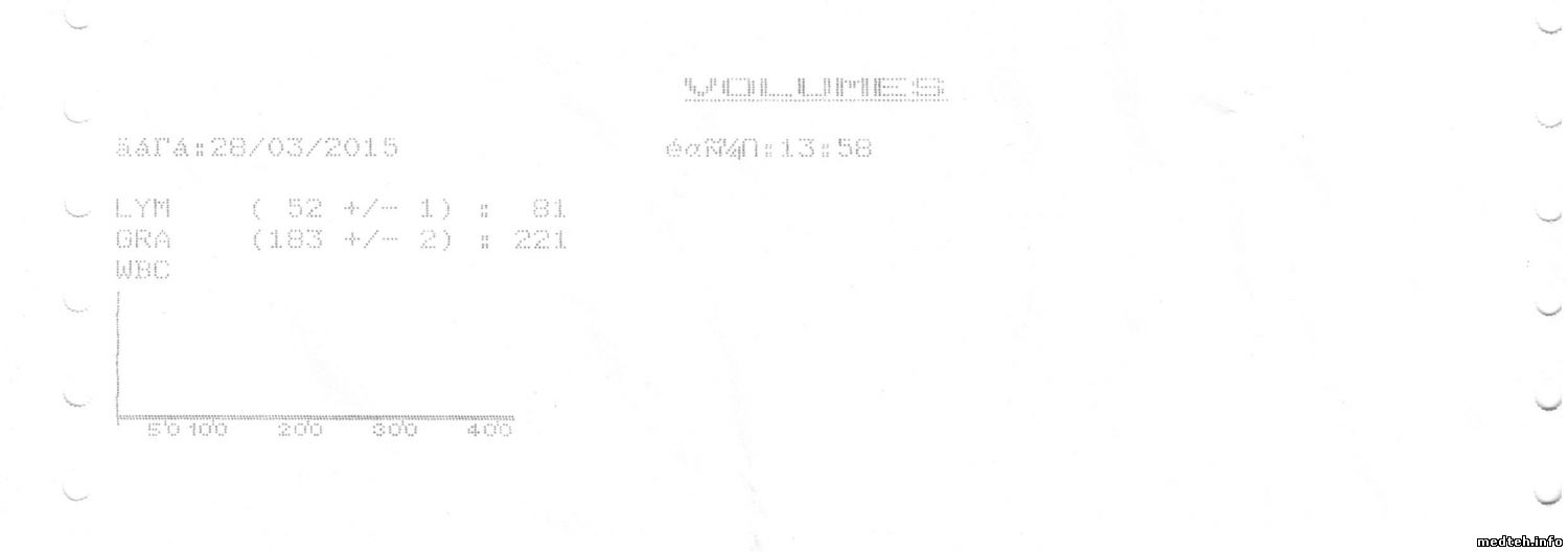 Недели две назад привезли Micros 60. Впечатление такое что его года 2 не мыли не чистили. Старт ап не проходил, фон был очень большим. Звездил по черному. Помыл почистил. Разобрал апертуры, гидравлические шприцы воздушный шприц - помыл, почистил,смазал. Вроде заработал. Отдал в работу. По контроли меряет вроде правильно. Только вместо 2-х измерений 3, формула распределения по лейкоцитам выдавала моноцитоз. Настроил гейном, но по контроли правильно, а по реальной крови не совсем совпадает. Апертуры снял проверил под микроскопом - идеал. Ах да, была беда: коррозировала внутренняя часть экрана от попадания реагентов и при работе насыпало в измерительные камеры мусор. Зачистил наждаком, покрасил и заклеил изнутри скотчем. Резинки не менял из-за отсутствия новых и денег на покупку ремкомплекта. Визуально нормальные, нигде не подтекало. [p.s.] Кстати по поводу необходимости менять всю измерительную камеру при поломке фотометра, думаю что при нормальных руках реально восстановить. В файлах лежит фотка воздушного шприца и распечатки настроек прибора. Гистограммы анализов выложу позже.