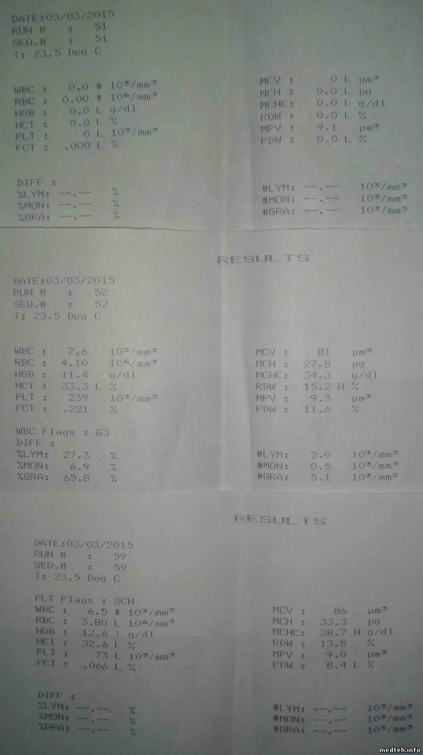 Кровь брали из пальца при мне , при чем с ватой. Я им на это указал, на что мне сказали что всегда так делали и было нормально. 52-й и 61-й - контроль, остальное кровь. Реагенты реамед: промыв-13028, изотон-15013, лизир-13040