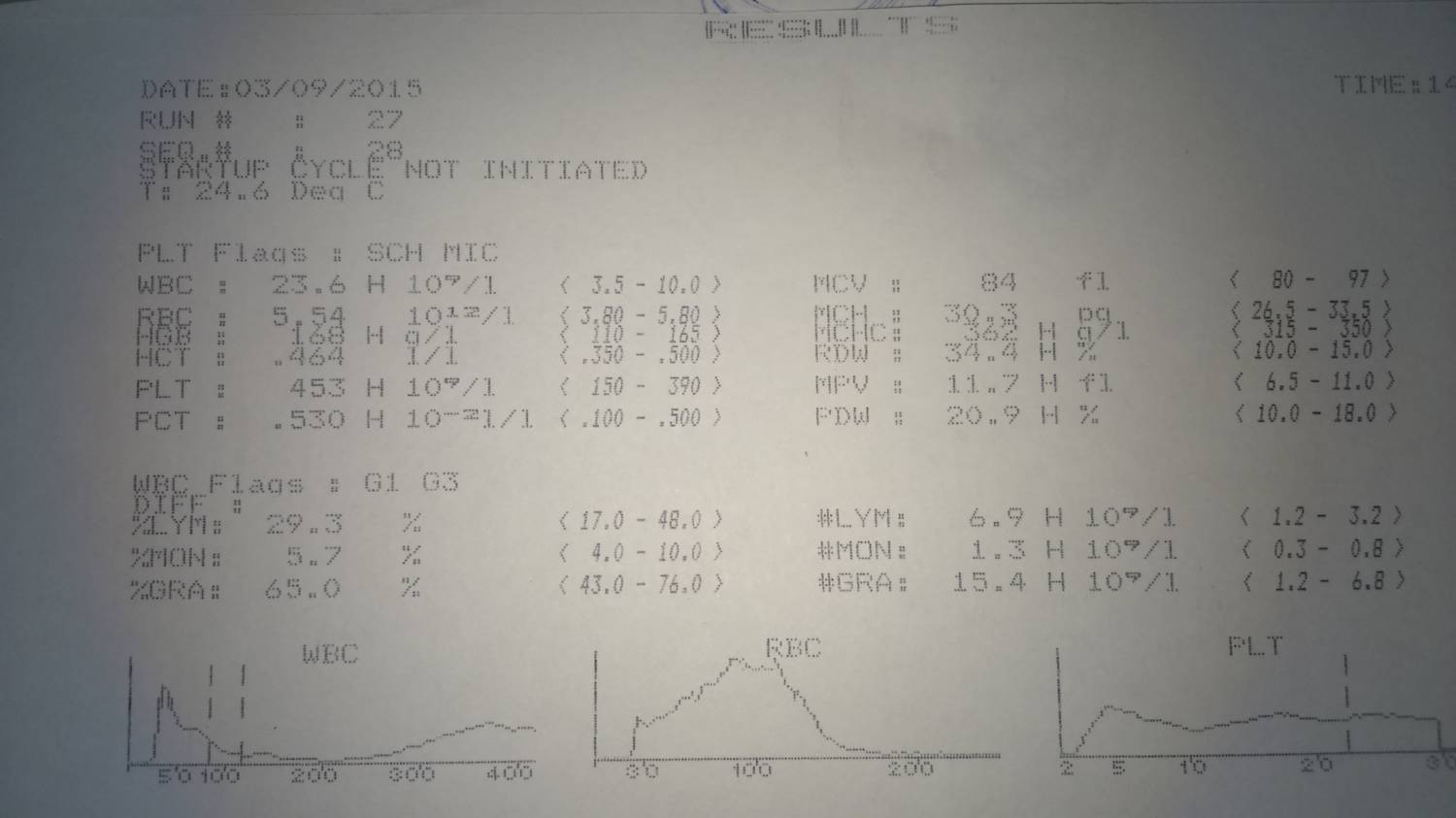Попробуй поменять подключение камер...RBC на WBC. И проверь не прогнил ли провод с клеммой, который к железке прикручен, которая апертуру прижимает,т.е второй электрод. Бывает что этого не видно пока термотрубку не уберешь, а там аж зеленое всё. У нас из за этого фон по PLT скакал...я уж весь аппарат перебрал, а дело в этом оказалось.