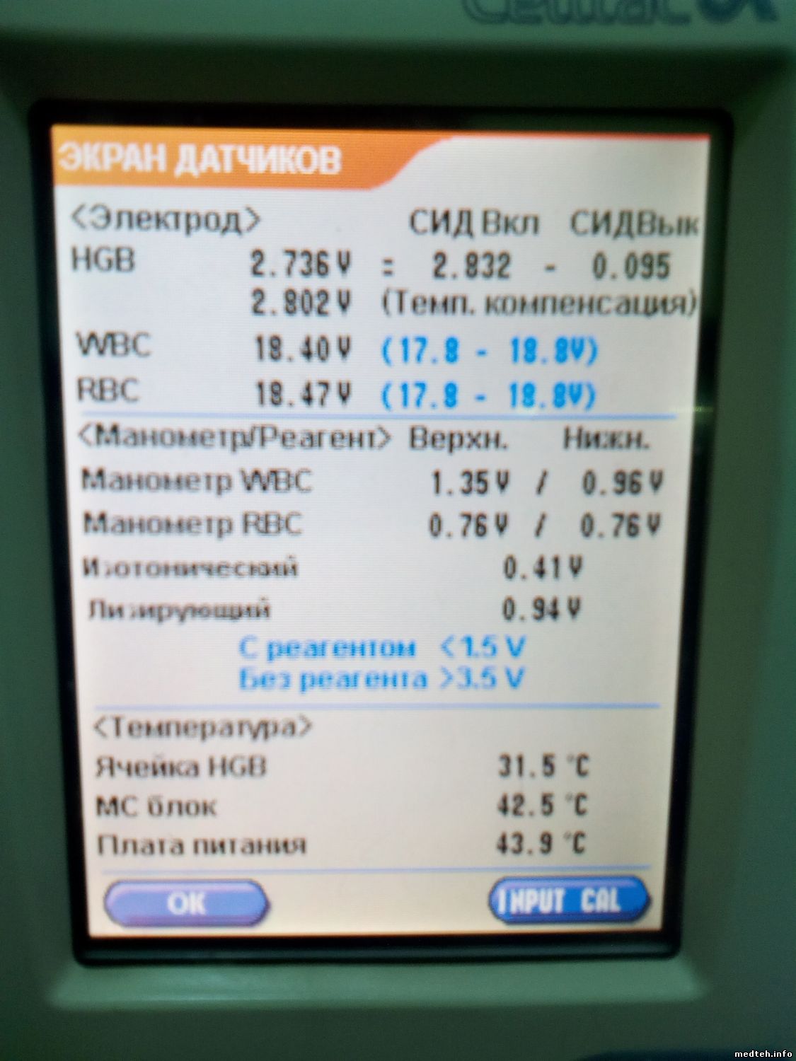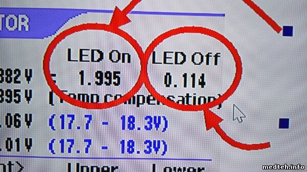 Уважаемые коллеги имею во владении мек - не показывает гемоглобин. На экране sensor monitor напряжение по нулям. Разъем от гемоглобиновой камеры передернул. Резистор подстроечный целый. Когда нахожусь в экране sensor monitor зеленый светодиод мигает раз в секунду примерно. Вопрос: светодиод должен гореть или мигать? Спасибо заранее за ответ