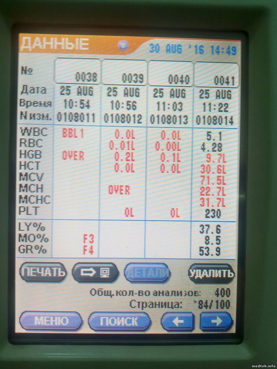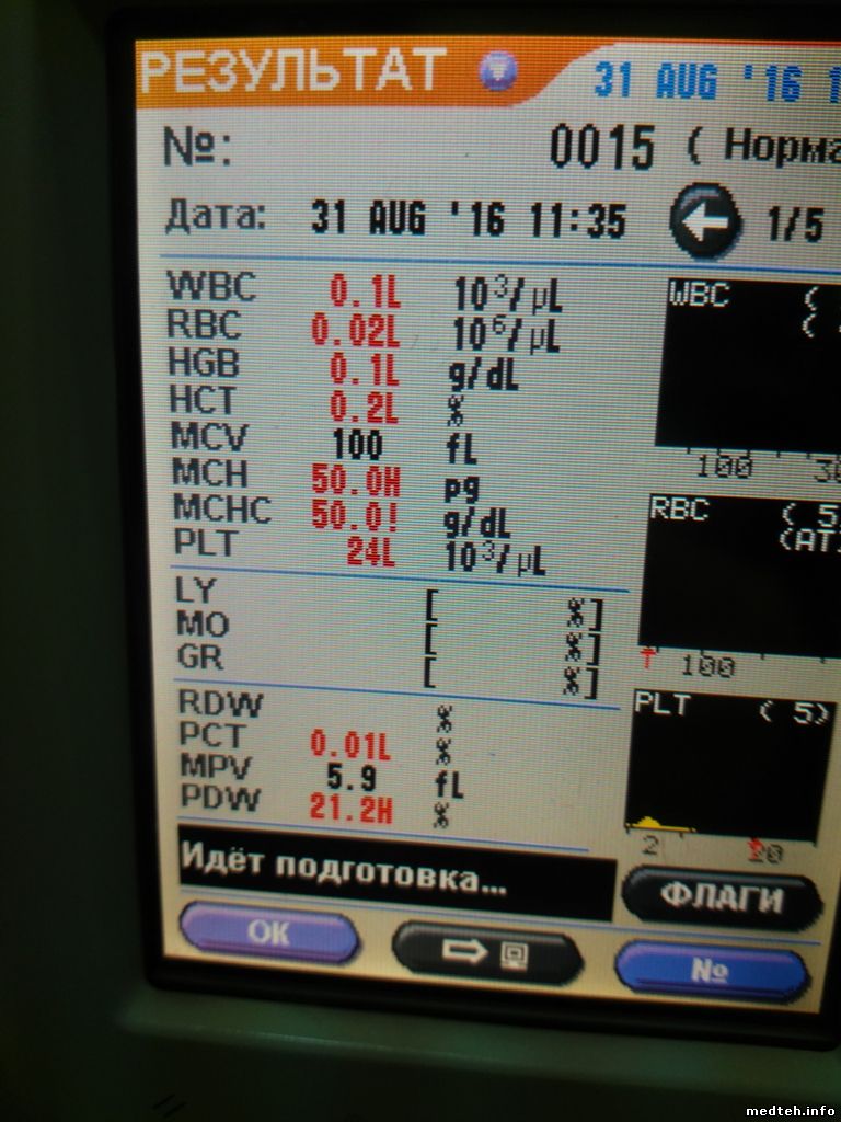 Замена реактивов дала некий сдвиг: уменьшился фон, Тромбоциты стали адекватными. Но при измерении крвои дает постоянно ошибку "poor hemolisys" и воскл. знак по измерению лейкоцитов. Hb и эритроциты в норме. На что еще можно обратить внимание?