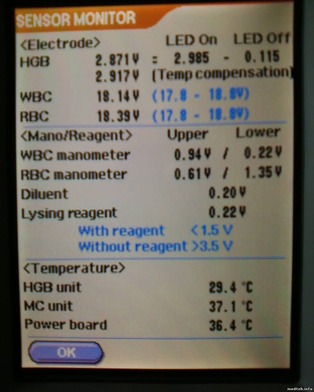Посмотри с начало напряжение на фотометре, должно быть при заполненных диллюентом камерах порядка 3,5B, если ниже советую подкрутить подстроечником. PS: но для начала, посмотри очень хорошо лейкоцетарную камеру на чистоту, желательно в снятом с аппарата виде.