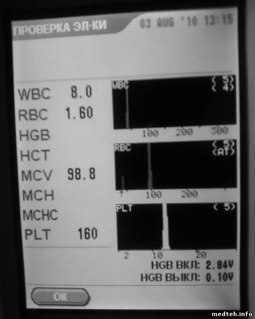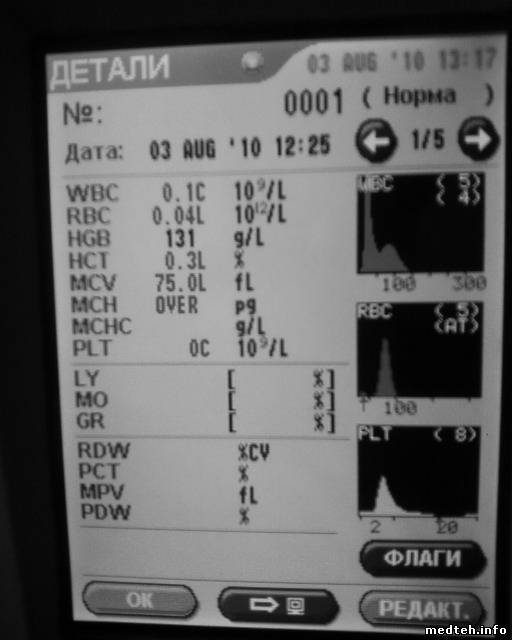 Самое интересное что при проверки электроники иногда выскакивал индекс С в plt и wbc, т.е. как на фотке но в конце эта буква. (wbc 8.0C plt 160C)