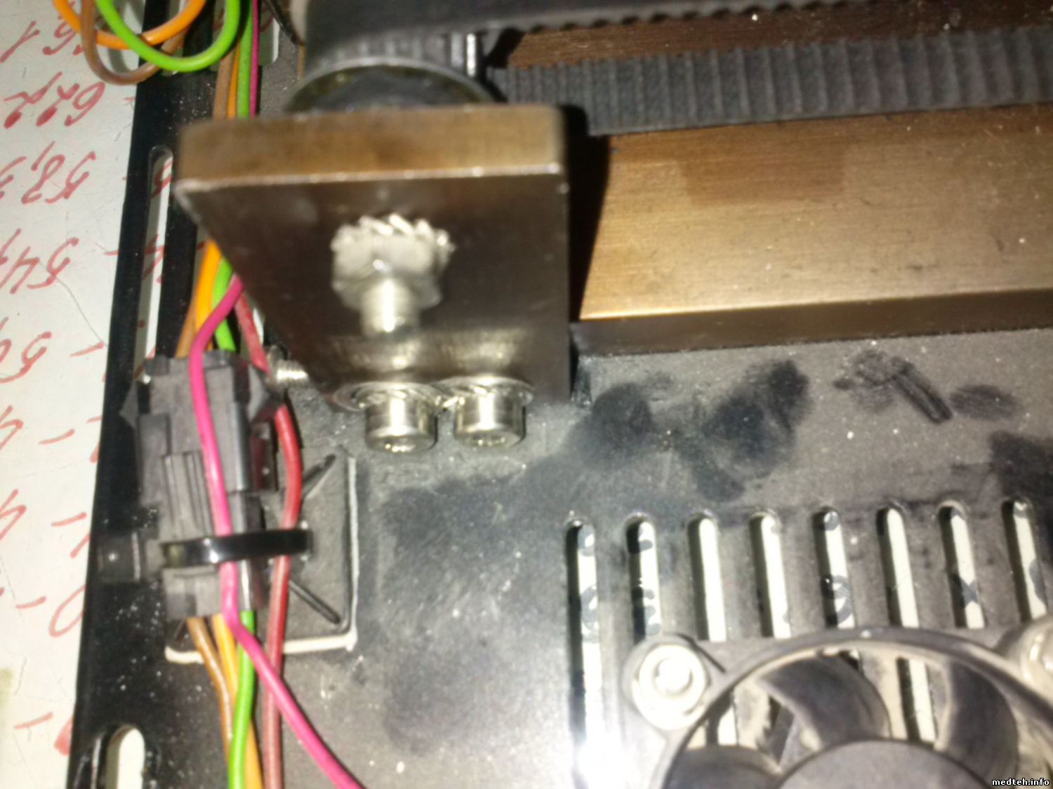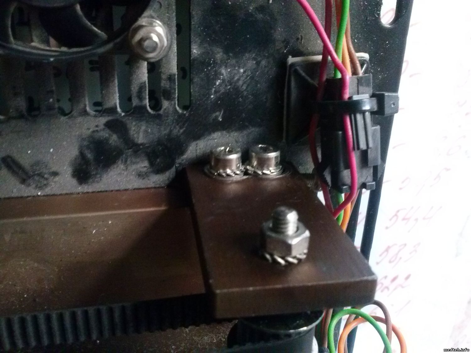 Доброго времени суток! Столкнулся с проблемой замены ремня трансмиссии. Процедура элементарная, вроде. Но то ли я дурак, то ли лыжи не едут. Пришел ремешок из Диакона. Желтый. Произведен в Италии. Номера вообще не совпадают со старым ремешком, но это пол беды. Новый ремень короче на ~2-3 мм. Когда вынул старый ремешок, новый натянул еле-еле. Шкив до упора в право не двигается вообще. Как я с ним ни колдовал. Менял в паре с лампой. В чем прикол. Сначала натянул ремень. Потом поставил и отрегулировал лампу. 4-90-6-1-7-измер - напряжение на лампе четкое, отъюстировал хорошо, нить накала вертикальна. Замерил напругу на x7-x6. Норма. Всё собрал, позвал врачей проверить. Делают анализ, вылетает: Ошибка 1 и первые два результата бредовые. Проверил, четко ли попадает световой пучок в кюветное отделение. Выяснилось, что с 1 по 6 позиции световой кружок смещен на 2-3 мм левее, чем нужно. с 7 уже четко встает. Как я ни мучал этот ремень со шкивом, ни черта у меня не вышло отрегулировать. Поставил старый ремень, все заработало как надо... Что не так? Ниже выкладываю фотки: положение регулировочных болтов со старым ремнем, положение болтов с новым. Красным кружком выделил тот самый зазор, который никак не получилось убрать. Ну и фотки нового ремня. Точно ли он климовский... Сам аппарат 2005 года.