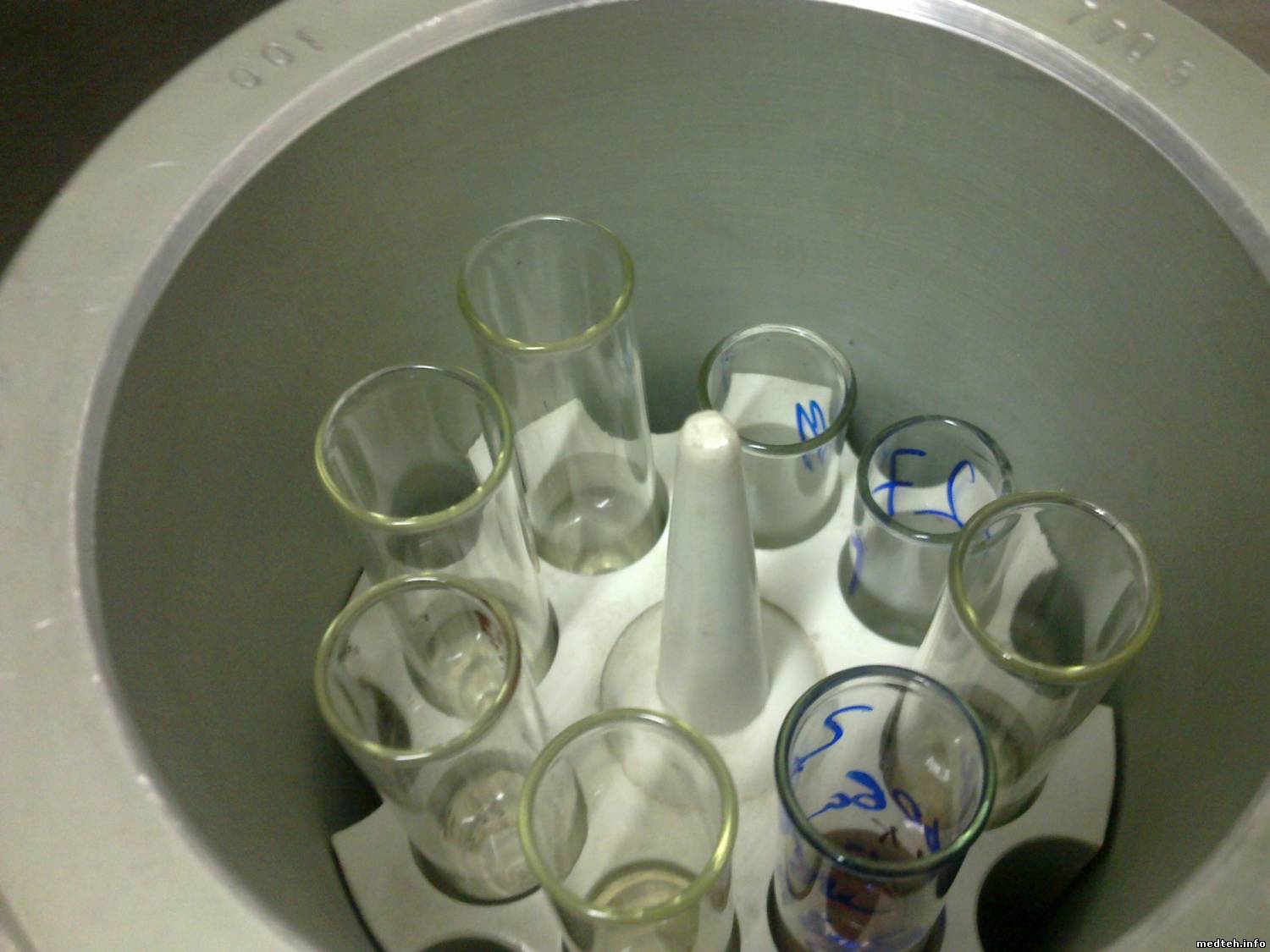 центрифуга ОС-6МЦ, ротор на 4 контейнера, в комплекте были пластмассовые пробирки, установлена в лаборатории и используется для разделения крови жалобы врачей на на то, что при работе на 2000 об/мин разбиваются стеклянные пробирки 10мл пробирки конусные, сужаются к низу по моим наблюдениям старая центрифуга ОС-6М с конусным ротором, пробирки собраны у самого центра вращения, а на новых ОС-6МЦ стальные контейнеры расположены у самого края и значит центробежная сила намного больше, чем в старой в загружаемых пробирках пробы крови очень не равномерно отобраны, в одной мало 2-3мл, в другой больше половины 6-7мл в паспорте указано что нужно доливать воду чтоб пробирки не разбивались вопрос: почему бьются пробирки? разрешено ли использовать конусные пробирки? нужно ли уравновесить контейнеры по весу для равномерности загрузки? какие еще могут быть причины битья пробирок? может они должны быть изготовлены из особого стекла?