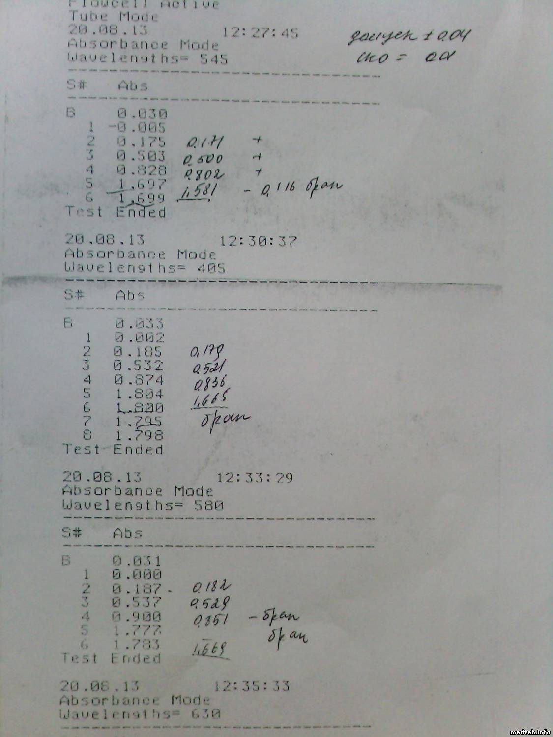 При любом режиме ( пробирка или проточка) пытается провести измерения по окончании выдает Remove Tube и виснит. Может измерительный тракт помер? Подскажите какие напряжения должны быть на светофильтрах. Благодарен за все подсказки. Лаборант сегодня рассказал: прежде чем лампочки сгореть минут пять горела необычно ярко. Сейчас напряжение на лампочке -5,7 вольт