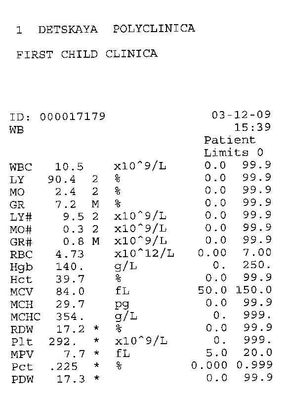 Гистограмму, к сожалению, выложить не могу, не родной принтер не поддерживает култеровскую графику. Сегодня обратил внимание, что попёрли результаты RDW.