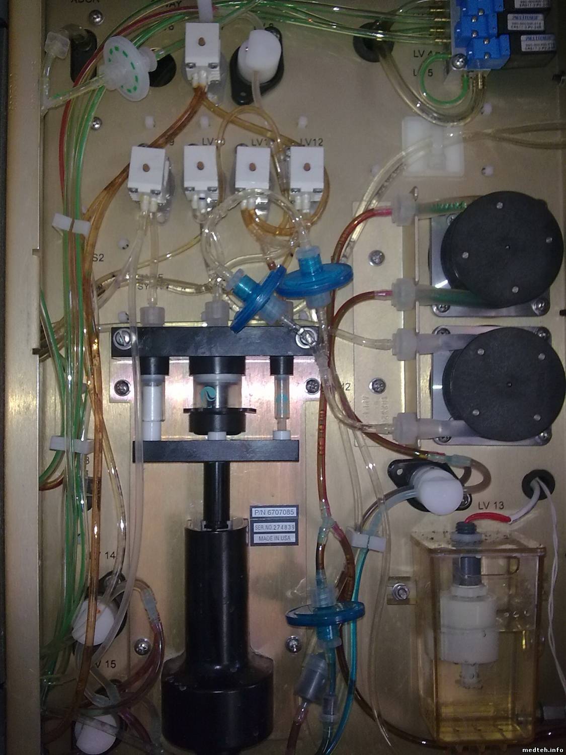 zx19 писал Знающие господа, есть вопрос. начали массово выходить из строя сабжи с неиспрвностью6 нет счета лейкоцитов. при подсчете большие цифры на RATIO CV и WBC MEAS. остальное считают как новые. У меня что то похожее по моему было. Да может кому то из новичков интересно будет. Маленько предистории - аппарат поймал сгусток(в пятницу вечером), позвонили в понедельник в обед. Пока приехал - лаборанты несколько раз пытались его включить, а он выдает "мех. ошибка шприца". А как же - тромб в пробозаборнике засох напрочь. Соответственно продавило клапан на пробозаборник(LV10 или 11 не помню), продавило раствор через шприцы на клапана LV13,LV14 и шаговый, водяные фильтры и некоторые участки трубок в сгустках. Пробозаборник проковырял, трубки снял промыл, обратные клапана, LV10 отреставрировал посредством перчатки(т.к. не было на замену). Не заметил только LV13 ,LV14, т.к. залиты были чуть, и в тестовом режиме прекрасно щелкали. Вызывают через два дня - "низкий вакуум в начале цикла". Пришел - камера переполнена, помпа несколько раз успела хапнуть раствор, клапана LV13, LV14 еле шевелятся(). Перебрал их как завещал уважаемый fred1 - вроде все заработало. Через два дня опять вызывают , "низкий вакуум в начале цикла". Включаю - "ошибка электросхемы". Ну решил сначала помпу посмотреть а там видно будет. На помпе плата фильтрации питания насоса - вся "зеленая" от окислов побрызгал "контактом" протер спиртом переднюю сторону, задняя вроде чистая была(поленился открутить) перебрал помпу. Ну думал на этом точно все. Ан нет звонят через день - "аппарат че попало показывает". Приехал , startup - WBC, RBC и Hb - pass, PLT - 260, на пустой пробе - почти все по нулям PLT - 260, на контрольной крови - WBC -0.1(0.2) а все ее составляющие ......, RBC почти в норме, Hb тоже в норме, PLT - 260 + 255= 515. Пол дня сидел, репу чесал, вспоминал что еще умного было в этой ветке пока ни дернуло меня опять в помпу полезть. А там с обратной стороны платы под лаком доржки сгнили которые на фильтрующие кондеры идут - пропаял все как надо и вроде заработало. Хотя не факт - прошло всего два дня