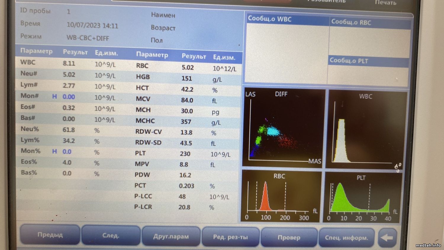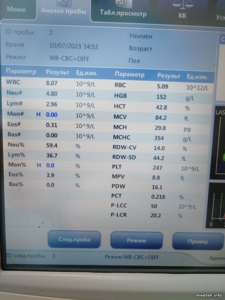 Здравствуйте! ВС-5150 перестал считать моноциты. В какой-то момент начал и опять перестал. С утра иногда считал первую пробу, сейчас не считает. Остальные показатели в норме. Есть ещё вопросы по эозинофилам. Подскажите, пожалуйста, что можно сделать?