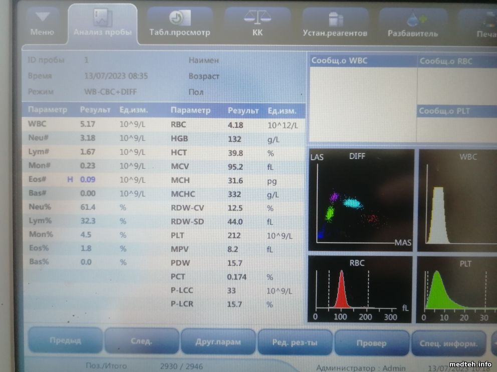 Ну, как ни странно, это не показатель, здесь вся белая кровь считается в проточке. И при распределении клеток с лейкоцитами сложно промазать, самая крупная клетка, а вот с остальными немного проблема, задействуется проводимость, отражение и прочие прелести ... Ждём свежие лизеры, но что- то подсказывает не в этом проблема ...