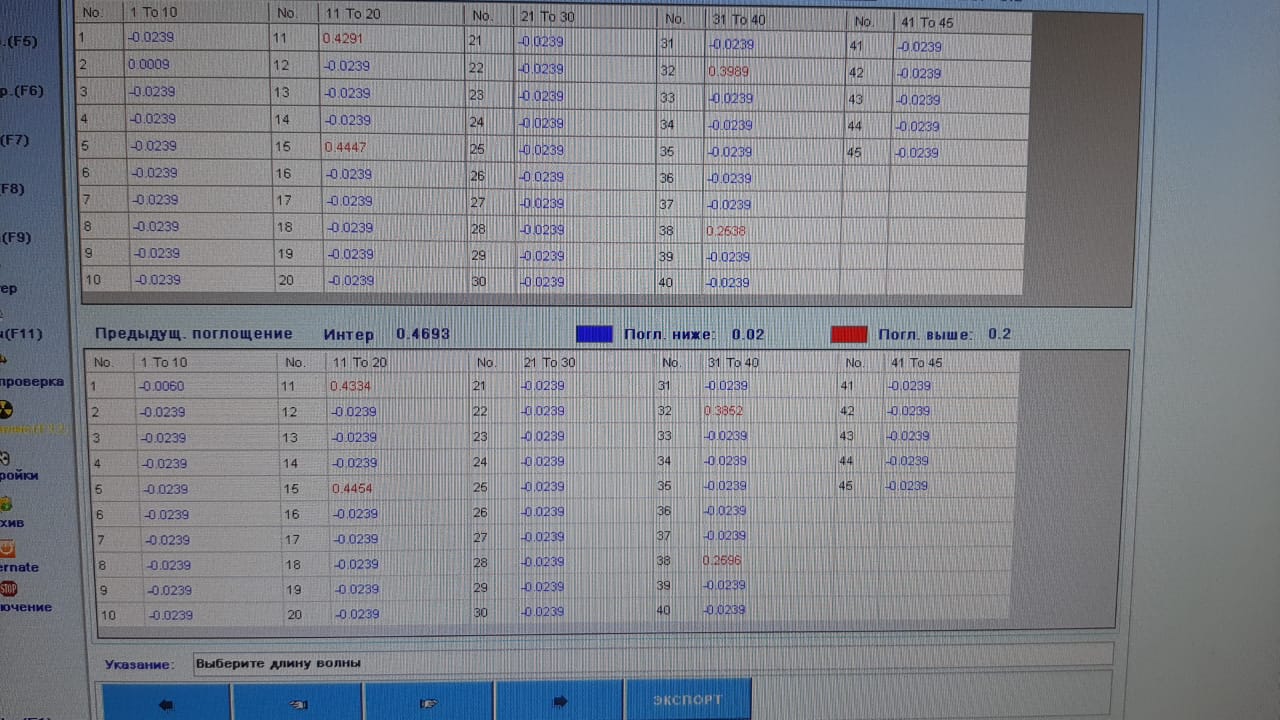 После замены лампы столкнулись с проблемой - в режиме промывки и сканировании кювет на всех длинах волн идёт - 0,0239 или - 0,0240.