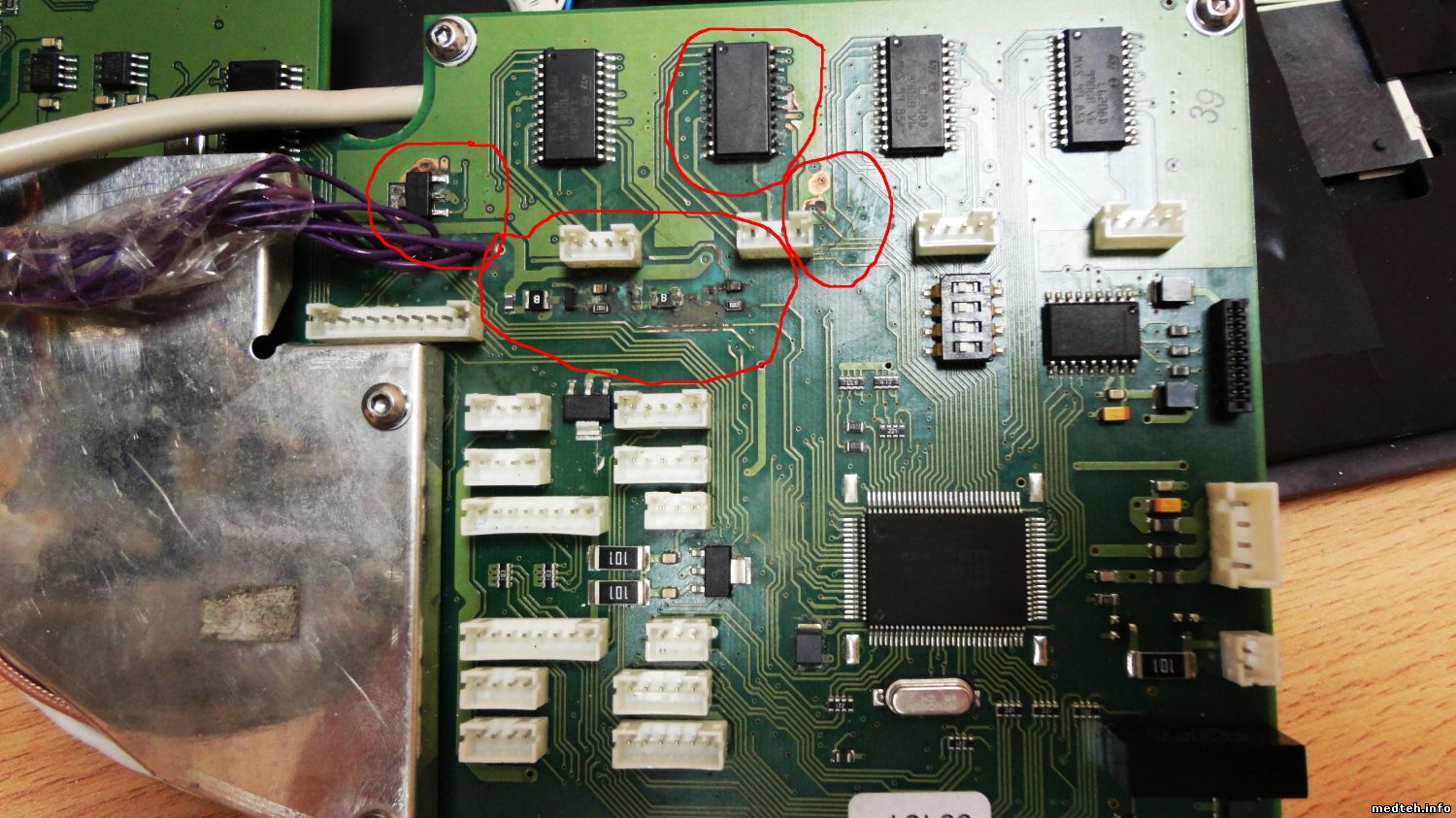 Подскажите по разъемам с левой стороны анализатора, там три штуки, подписаны 17, 18, 19. Я их неосторожно сдёрнул, когда первый раз вскрывал корпус, теперь не знаю в какой последовательности ставить назад, там есть один 8-пиновый разъем и три 3-пиновых. Поставил по порядку от задней части анализатора к переду, но либо выдаёт системную ошибку 5114, либо зависает на 97%, либо на 14%. Если кто по памяти помнит черкните, или может схемка есть. -- Всё разобрался, надо было в обратной последовательности 19, 18, 17.