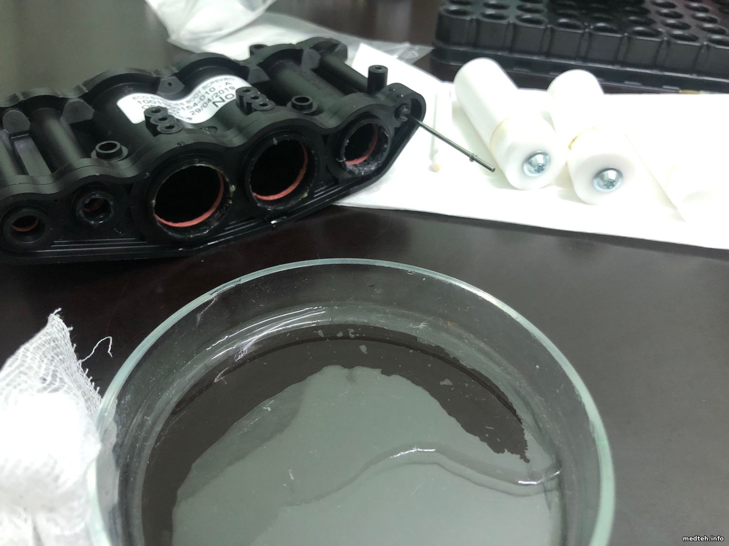 По всем описаниям механизм от гематологического анализатора DREW-3 компании Drew Scientific Inc., Великобритания/США. (Регистрационное удостоверение на медицинское изделие "DREW-3" ФСЗ 2011/10685 от 21.09.2011 года). Проблема в том, что выскакивает ошибка вакуума при работе. После промывки белизной и замене резинового колечка в моющей станции ошибка, вроде, как исчезла, но как оказалось только на холостых пробах. Как только начинает работать на крови, ошибка выскакивает почти сразу. У кого какие мысли на данный счёт? .