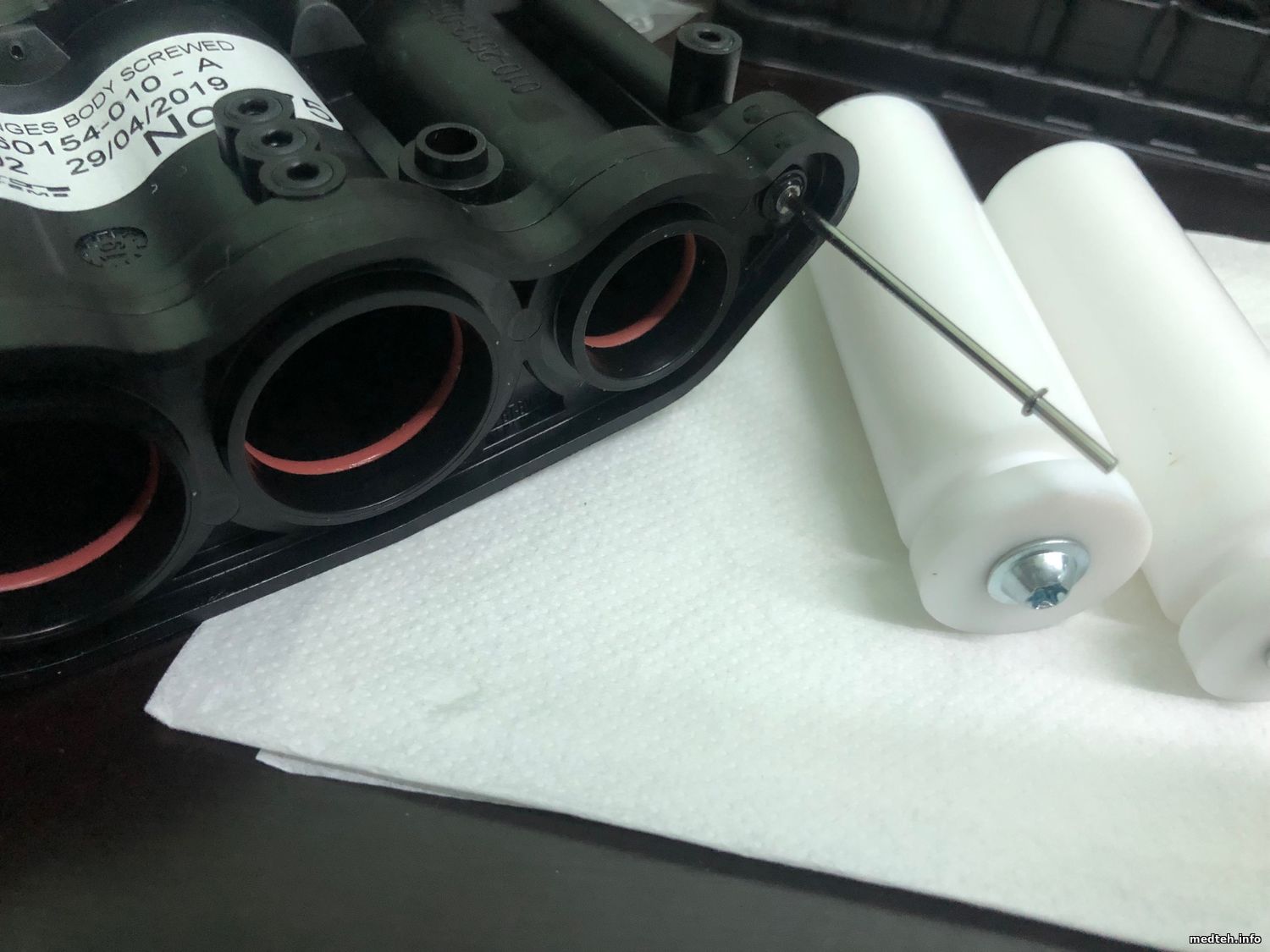 Звони или в личку на Телеге, приготовь фото серийного номера, пароль только на сутки. Тыкать только одну функцию. Больше никакие настройки не трогать! Окно меню, которое нам надо, ткнуть только ADJ Led. https://www.medteh.info/_fr/197/4287091.jpg Перед этим сделать все промывки и замачивание ванночек. . Теперь для пользователей! От пробоотборника отходят трубки, идут внутрь через резиновую манжету, со временем трубки начинают прожиматься! Делаем пару надрезов на резинке! . Диагностика клапанов. На слух должен быть чёткий звонкий звук срабатывания. Глухой звук говорит о том, что есть проблема с якорем. Ниже фото до и после ремонта крепежа пружины. Признаки, глюки при измерении, самые разнообразные ...Это же относится к Мифику, там такие же Буркеты стоят! https://www.medteh.info/_fr/197/5590450.jpg https://www.medteh.info/_fr/197/2698720.jpg . Обслуживание дозирующих шприцев! Главное при съеме модуля не провороньте маленькие колечки уплотнения, так как один шприц не используется то там нет кольца. . Две фотки не влезли ... как раз по смазке. https://www.medteh.info/_fr/197/8099238.jpg https://www.medteh.info/_fr/197/3559670.jpg Смазка прилагается, можно купить вакуумную силиконовую, или использовать от дозаторов. Интервал раз в пол года. . Надо бы поправить, здесь фотки по смазке: https://www.medteh.info/_fr/197/3267759.jpg https://www.medteh.info/_fr/197/8050594.jpg .