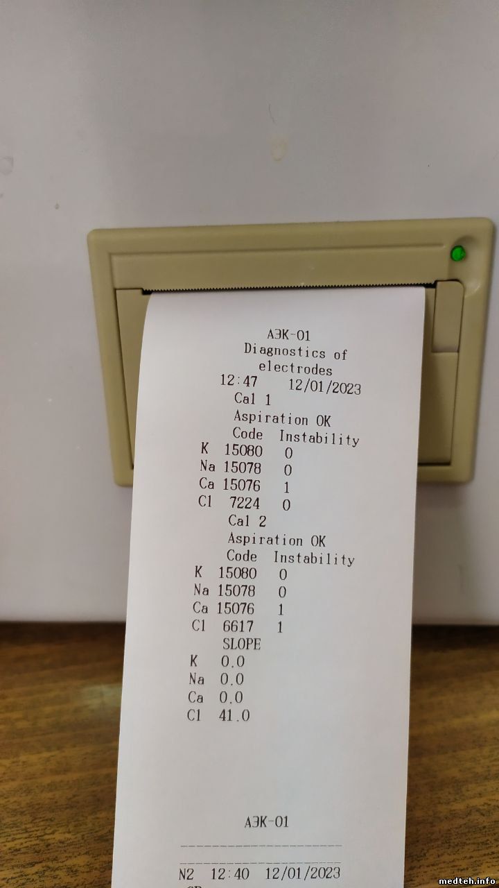 Добрый день. Подскажите, пожалуйста, по этому аппарату. Сгорел его родной блок питания. Поставил два компьютерных БП, один на электронику и принтер, другой на остальное. Аппарат запустился, но выдал ошибку электродов, подумали, что электроды надо менять. Пришли новые электроды, поставил та же картина. K, Na, Ca потенциал вне допуска. CL периодически пишет потенциал не стабильный, но CL меряет. Долго гонял 1 и 2т калибровки, чистил от белка - "всё до лампочки". Спустя пол дня "проснулся" К, аппарат всё так же пишет, что К вне допуска, но он стал измерять, правда. с большой погрешностью. Подскажите где искать проблему?