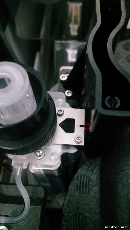 решил сам недавно свою проблему.... Без "сгибания" игл... А нормальным способом. Если кому нужно опишу процедуру. Значит надо зайдти под админом, и в обслуживании выбрать Diagnostics->Robotics->Adjust Transfer Head / Probe Position. аппарат подскажет , что делать, типа снимите крышку итд. затем пробозаборник встанет напротив прорези для центровки и освободит Z мотор. Я сначала освободил шпильку как показана на фото 0.jpg, затем настроил иглу чтоб она попадала не в прорезь, а за ней, как на фото 1.jpg. почему так... я,сначала, настраивал иглу, чтоб она попадала в центр в прорези, а трубка/штифт с эксцентриком стояла в позиции, как на фото 2.jpg. но аппарат выдавал все время FAIL. затем я настроил иглу снаружи прорези, но по центру, а трубка/штифт с эксцентриком как на фото 3.jpg, И обратно закрепил шпильку которую расслабил сначала и аппарат прошел удачно центровку иглы и в данное время функционирует отлично. кстати, забыл написать, для юстировки иглы, надо крутить трубку/штифт вокуг оси...