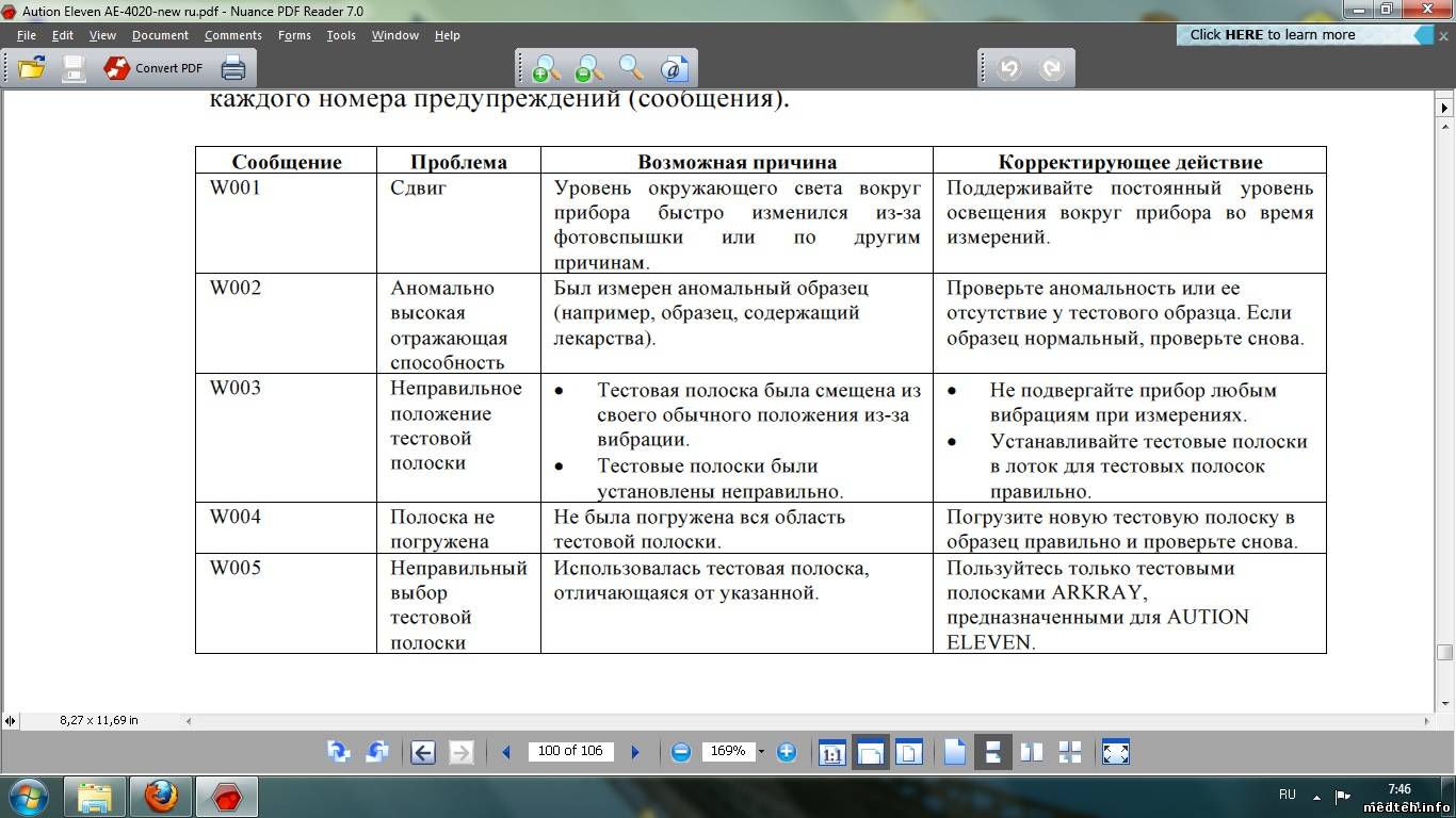 После 3-4 десятков измерений показывает ошибку W003 и начинает, при повторных измерениях, через раз снова ее показывать. Подскажите с чем связана эта ошибка. Мне кажется что она возникает когда тест полоска "наезжает", перекрывая, промежуток у белой "юстировочной" полосы справа на столике. Проконсультируйте кто знает, прав я или нет.