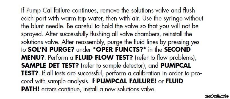 Клапан растворов он называется, дело процентов на 95 в нем. Сервисная у меня есть, только там ничего интересного нет. Медиковские приборы отличаются крайней простотой в обслуживании и замене запчастей, с этим, по идее, любой лаборант справится. А если что-то с электроникой, то без имитатора электродов все равно прибор не настроишь, а половина сервисной инструкции этому посвящена.