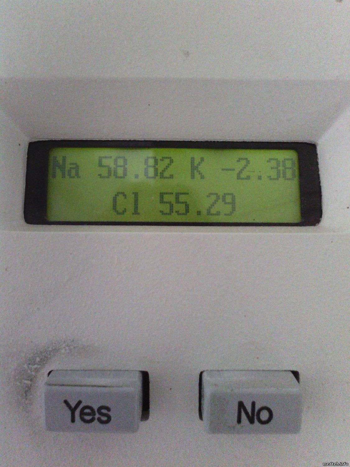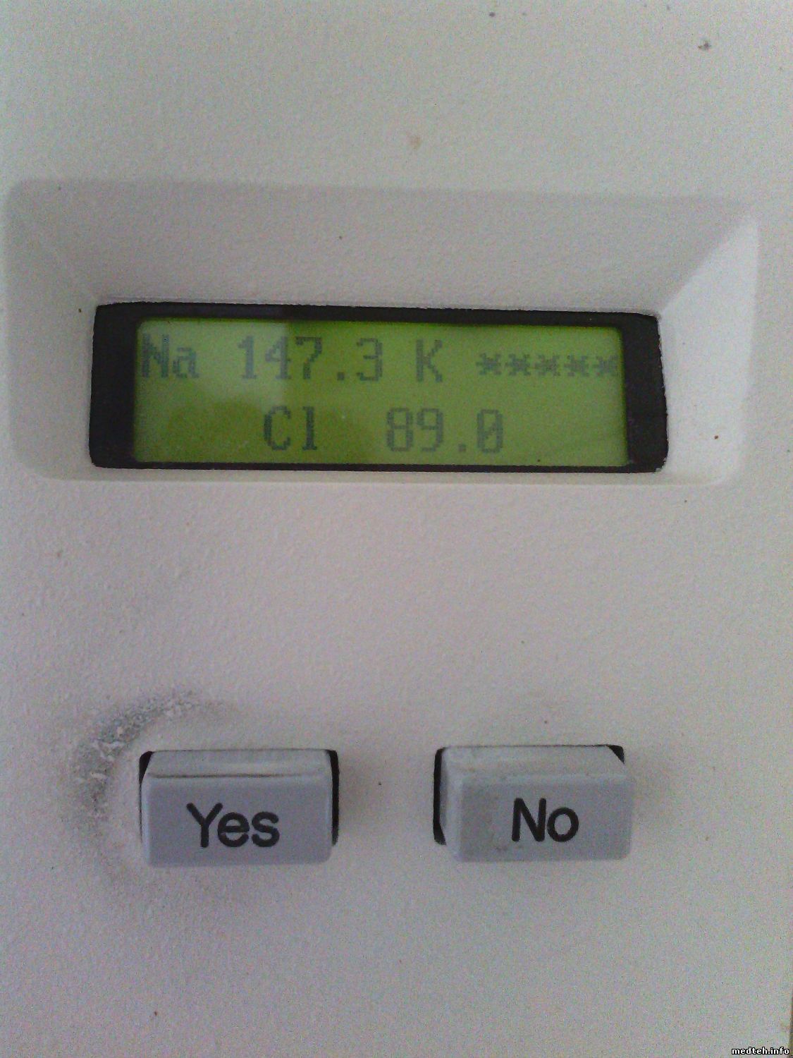 Прибор калибруется, ошибок не выдает.Напряжение электродов попадает в допустимый диапазон.После взятия пробы крови не выдает значения Na,вместо значения натрия выдает **** ,а расчет К в норме .С чем это может быть связано(электроды новые)?