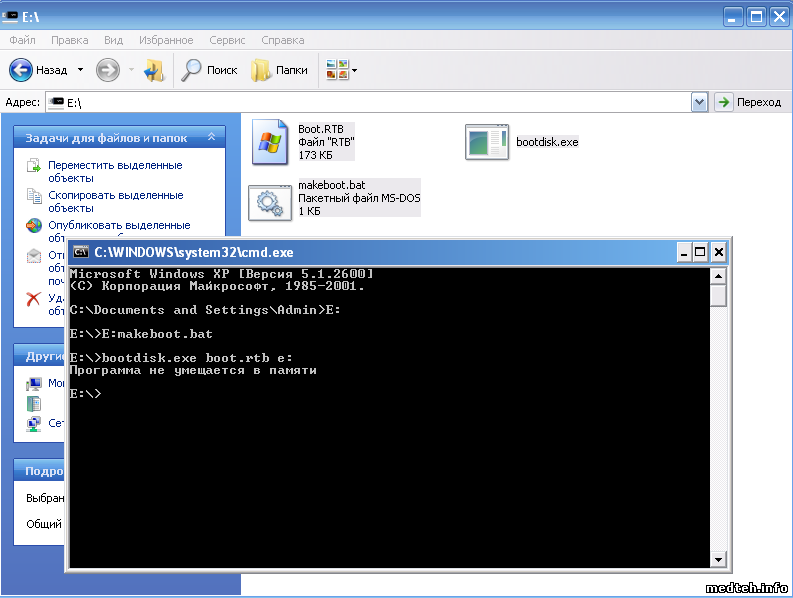 Скинул эти 3 файла на MicroSD далее пуск - выполнить - cmd - переход на диск E: - makeboot.bat и дальше ступор unknown Программа не умещается в памяти ?