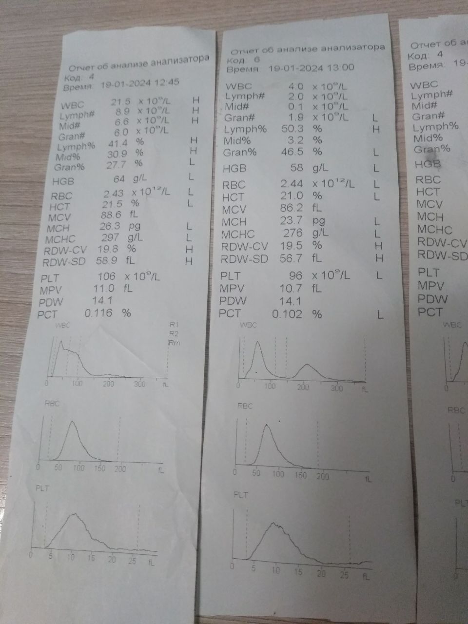 Здравствуйте. На таком анализаторе есть проблема с лейкоцитами, стал считать их примерно в 3-и раза больше, формула, конечно, тоже неправильная. Остальные параметры точно в норме, проверяли по контролям многократно. Моется хорошо, все сервисные проверки проходил, ошибок нет, дозирует все жидкости нормально и лизирующий тоже, который уже менял на другой для диагностики. Лейкоцитарная кривая имеет в самом начале большой подъём по сравнению пробами по такой же контрольной крови, что говорит о том, что, видимо, попадает какая-то грязь. Заметил, что нестабильно дозируется воздух в конце лейкоцитарного цикла, когда идут характерные щелчки клапаном, но понять причину этого пока не могу. Воздух, видимо, служит для перемешивания, давление его в круглой камере всегда нормальное (ошибок нет) и поддерживается именно в момент подачи воздуха в измерительную камеру (это проверял), трубки все чистые. Видимо проблема в изношенной мембране сливного белого клапана. Неправильный счёт лейкоцитов начался после большого засора, на который лаборанты не обратили внимания и оставили так на ночь. Потом промывали 2-а дня. Холостая проба по нулям всегда. Открывал и чистил другие клапана, все не успел, так как лабораторию закрыли до понедельника. Просто, к сожалению, нет возможности сравнить весь измерительный цикл с таким же циклом у такого же рабочего анализатора.