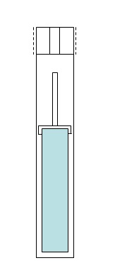 Шприц один и на реагент и на пробу, насколько я понял в более старых моделях такой-же по объему шприц, но насадка без штырька. Фото не получится но примерный рисунок прилагаю, пунктиром обозначена резьба крепления шприца.