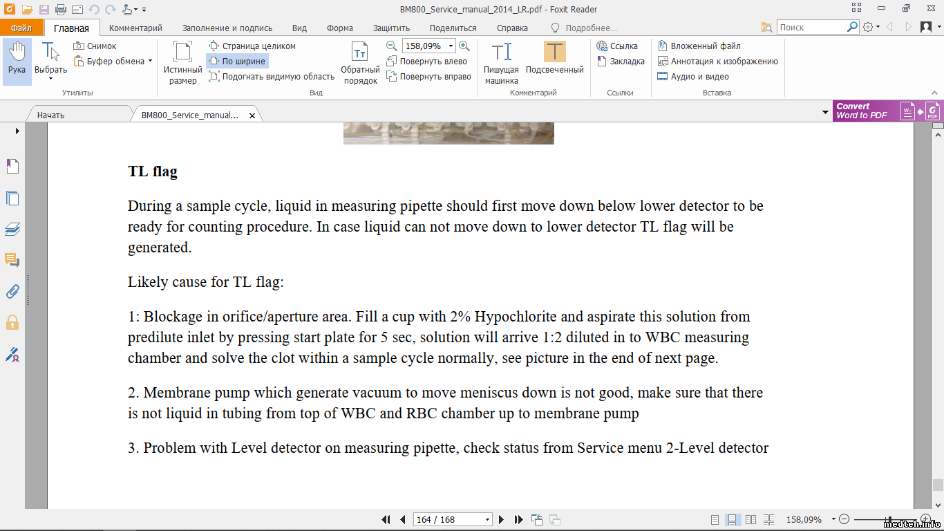 Проблема с WBC - нет показания, флаг tl, правая стеклянная трубка не заполняется.