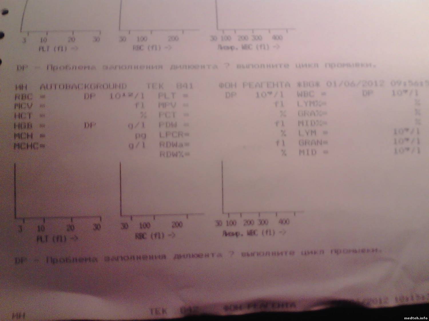 CrazyIgels, так у тебя проблема прям на фото - DP ошибка заполнения дилюента. Скорее из-за простоя образовались солевые пробки в магистралях и клапанах и также кристалы соли в самих аппертурах, простым заполнением водой это не решается, т.к. отмокает медленно, а может и вообще не доходит до нужного места, надо посмотреть что происходит при работе - как идет заполнение измерительных камер. Конкретнее сказать не могу - у нас Медоники не водятся, но подобные проблемы общие для гематологии. Решение проверка всех магистралей и клапанов по очереди.