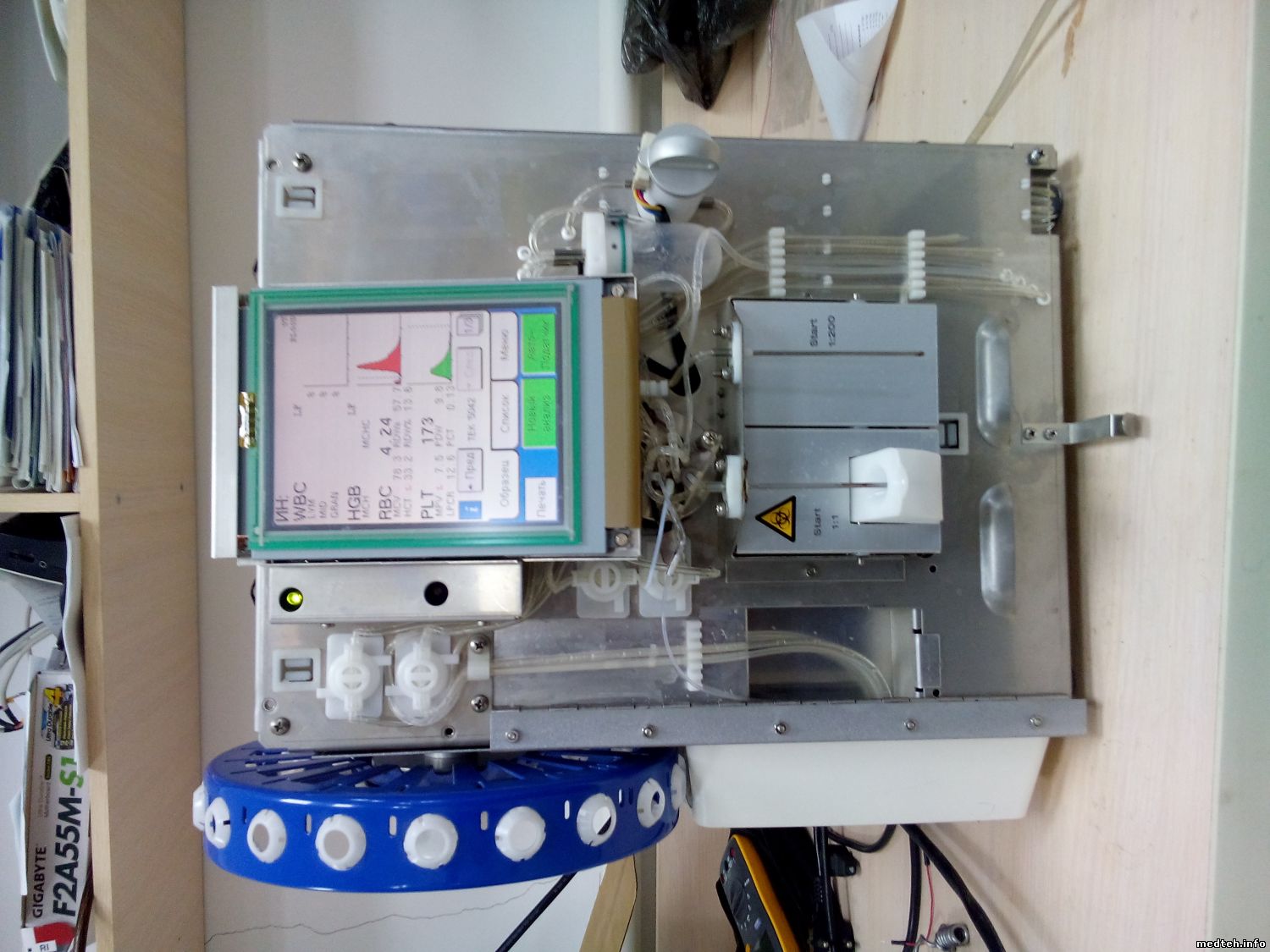 zuki-56, На этой фотографии его не видно. Он стоит на задней стенке прибора (за сливной помпой) и соединен с трубой лизирующего реагента. Продолжатель династии