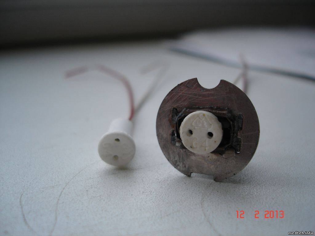 не хватало длины лампы, по этому переделал родной патрон всунув в него патрон G4.