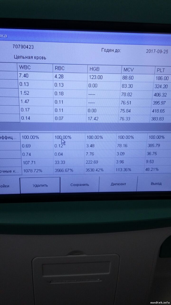 После долгих очисток, аппарат начал выдавать результаты и довольно таки не плохие, но 1 параметр PLT дает очень и очень завышенные результаты. Фото прилагается. Что делать в данном случае ???
