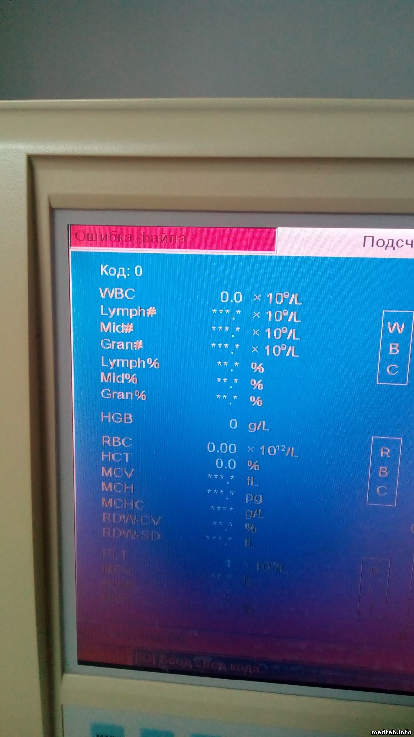 Hemolux19 (копия BC-3000 plus) перестал нормально измерять эритроциты, значения пошли вразнобой, либо звёздочки. Затем значения эритроцитов стали нулевые, следом лейкоциты стали по нулям, были капли на игле.
