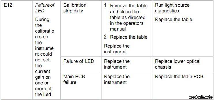 Е-12; неисправность индикатора. Так эта ошибка трактуется в описании прибора. Сталкивался несколько раз. Обычно, за неделю до этого проскакивали, периодически Е-58, 63, 67 без всякой системы. Причиной являлось, чаще всего, загрязнение зеркала в оптическом канале. Сейчас попробую прицепить фотку (последний вариант). Разбирая - будь внимателен: нежный шлейф в нижнем отсеке(где батареи), и не трогай маркированые лаком винты 2шт на оптическом блоке. Металическая изогнутая вдоль прастина над тестовой подставкой - это и есть зеркало изнутри. Проникновение в глубь, интересно, но, по опыту, бесполезно (источники ещё не подводили), а сборка - жесть!!!