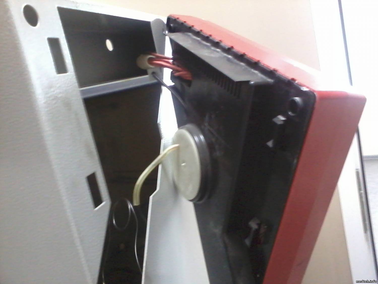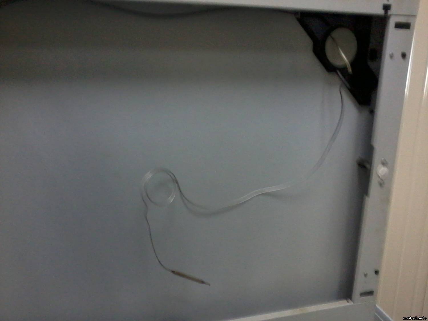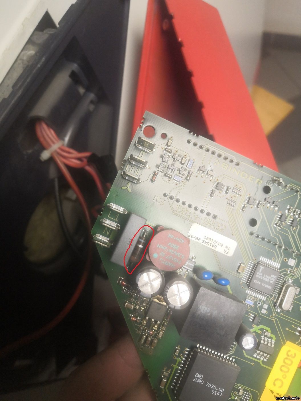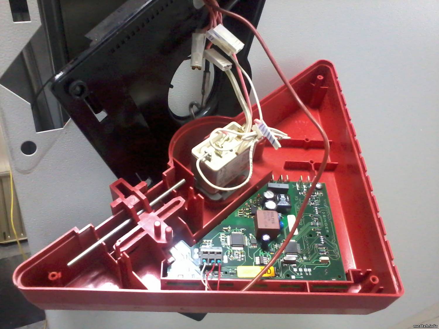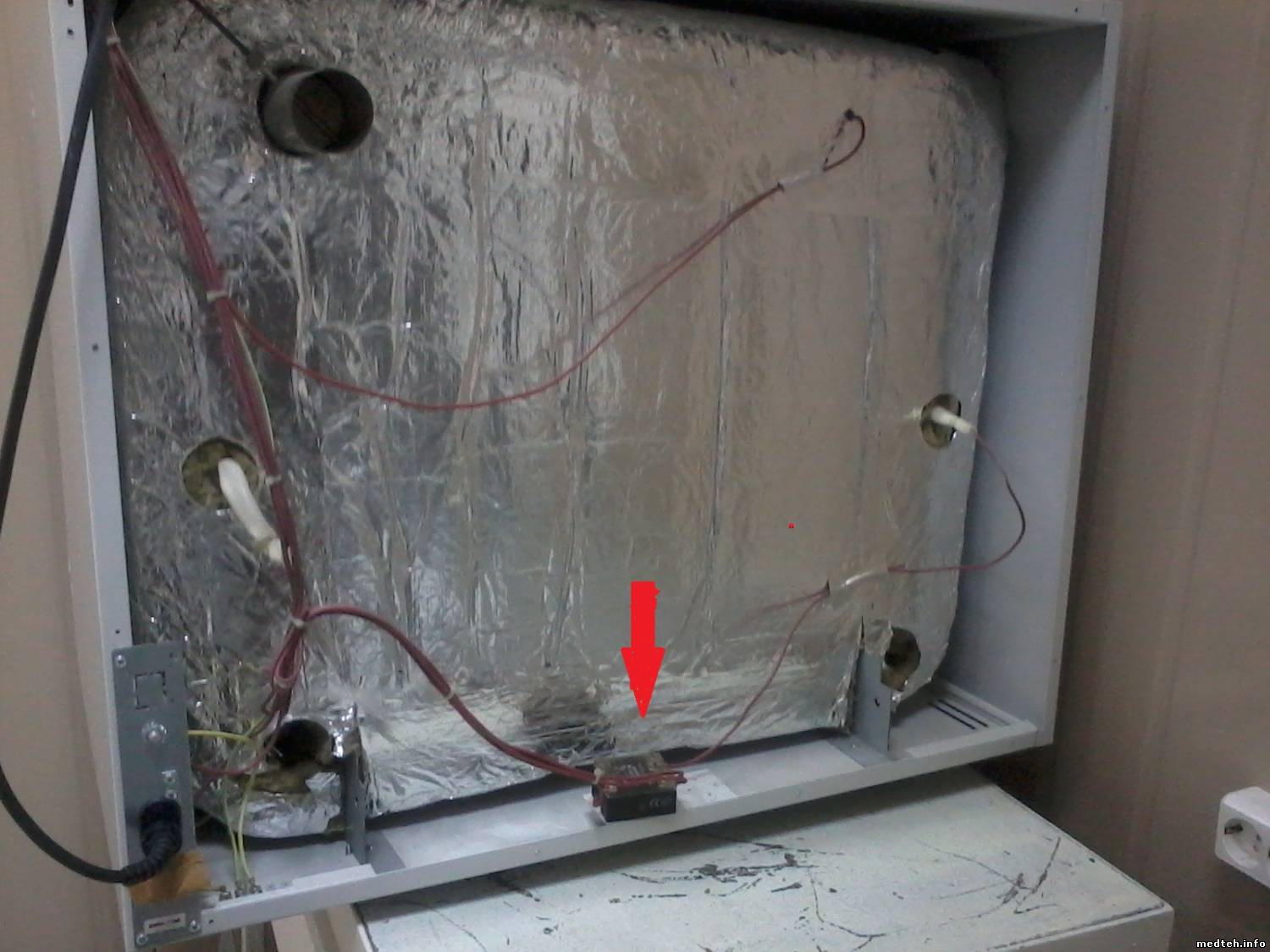 Хочу поделиться с ремонтом шкафа суховоздушного модели ED-115 немецкой фирмы "Binder". Пришел на заяву, вкл not warm шкаф, праверяю/устанавливаю уставки program, всё ровно не греет, и на табло светиться комн. темп., но красная точка НАГРЕВ светиться. Думаю: сгорел ТЭН, обрыв проводов, и что-то ещё. Тупо разбираю и ищу prabl. Прозвонил провода, пощупал плату управл. зарисовал для себя соед. проводов и запустил. УРА нагрев пошёл (уст t=160), но недолго была радость темп. полезла до 200 градусов. Думаю: провода №3 и №4 у меня в воздухе болтаются и идут на плату управл. Думаю: должен быть ещё один device типа БП ... Напряг заказчиков заявы и ушёл. Прихожу, а пропажа нашлась - стабилизатор напряжения от 3 до 32 Вольт (в денном случае производ. настроил 4,6 В), местн. "профи" (электрик) не смог поставить програм. Разобрал шкаф и унёс с собой зачем?. фото вылажил:
