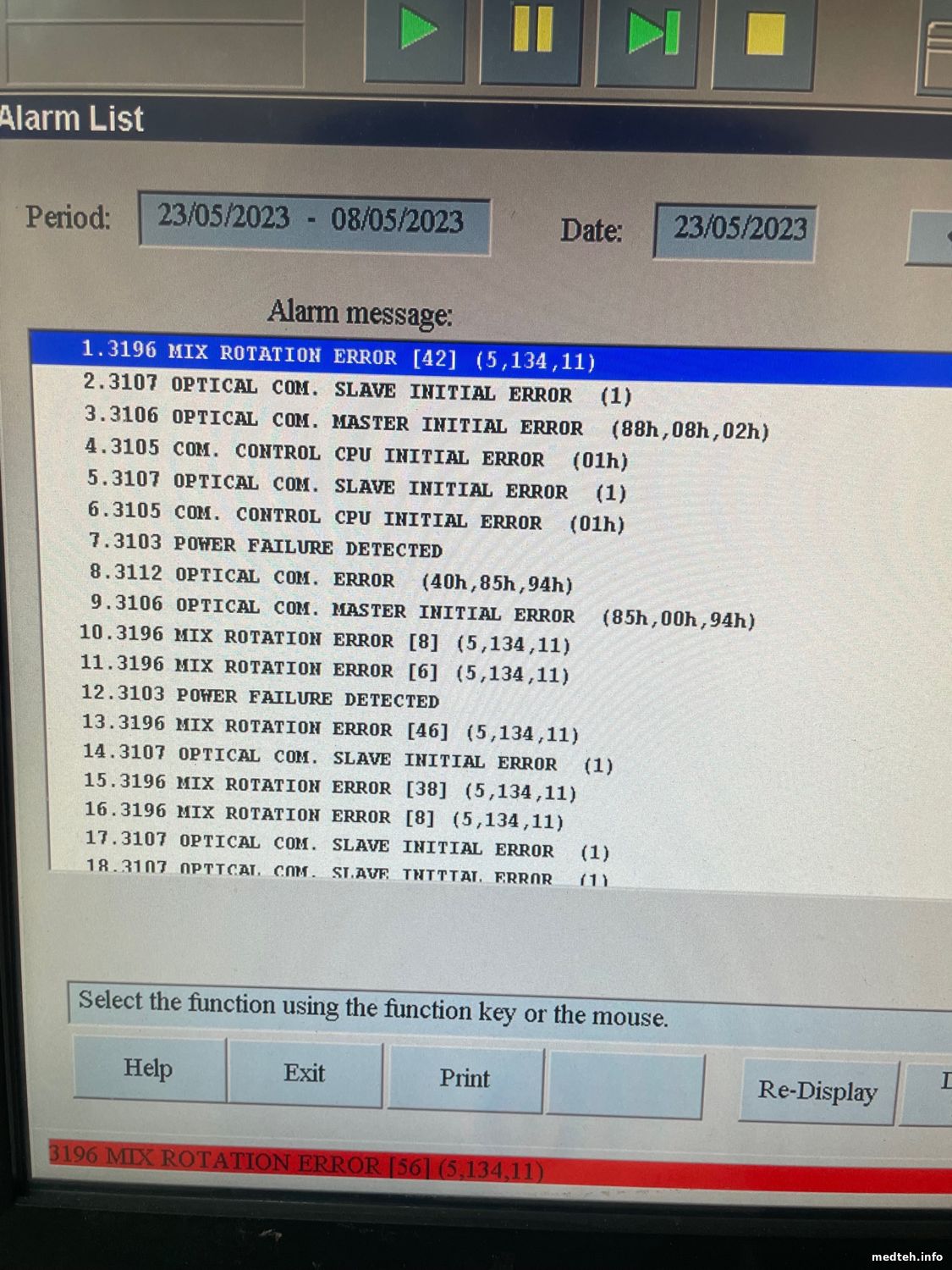 Появились проблемы: "3106 OPTICAL COM. MASTER INITIAL ERROR" и "3107 OPTICAL COM. SLAVE INITIAL ERROR", после замены плат высветилась: "3196 MIX ROTATION ERROR" - фото прилагаю. Появилась вчера вечером, до этого анализы делал спокойно и горя не знал.