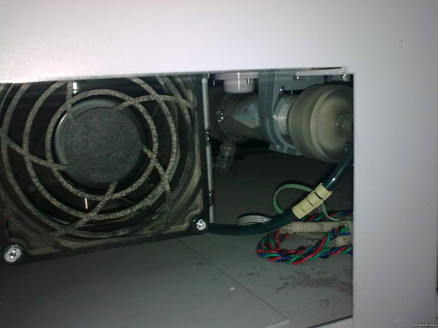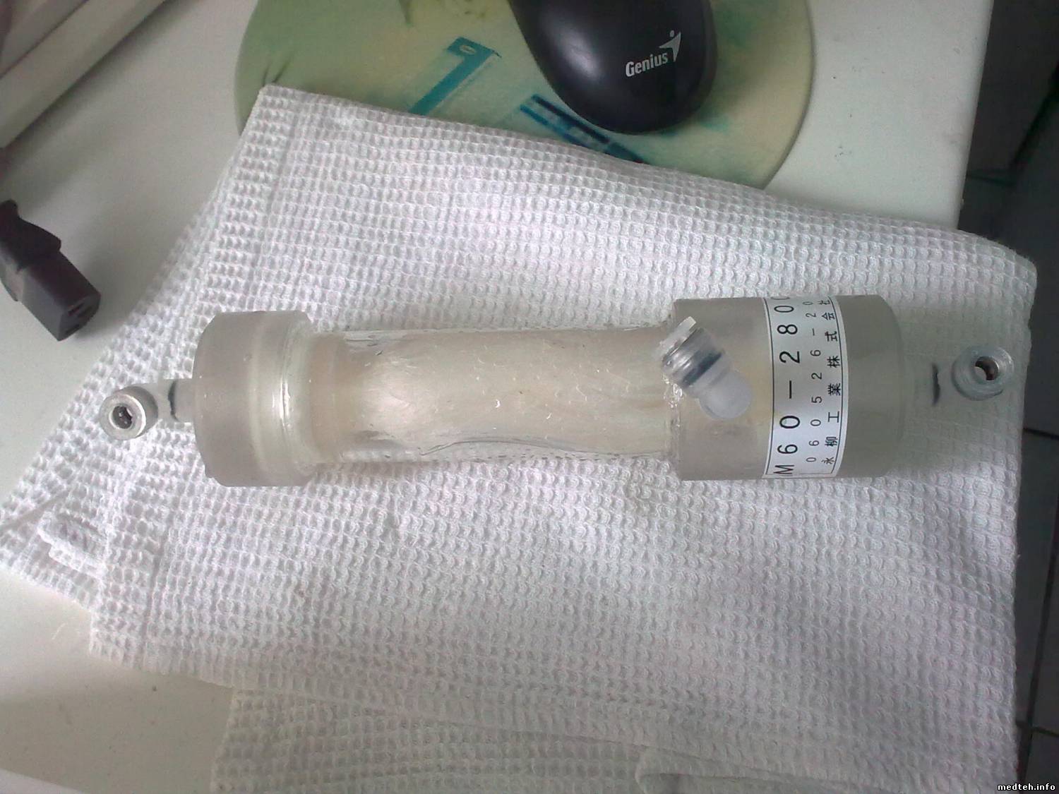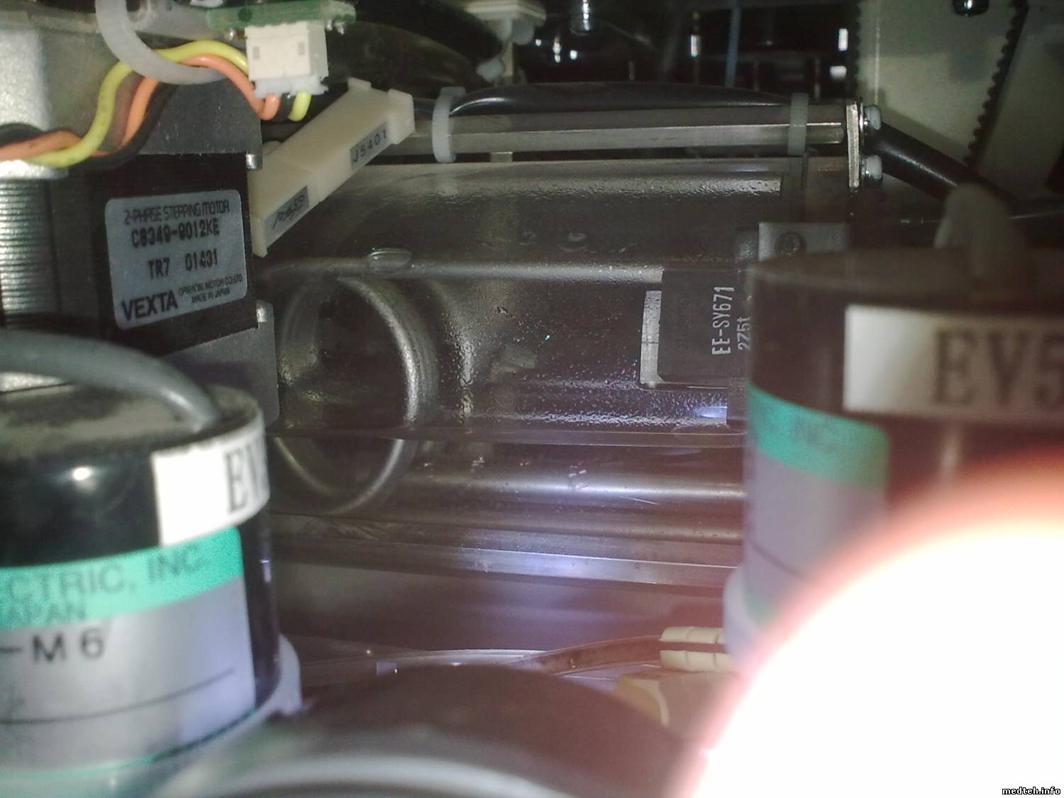 По выше поименованной проблеме вроде разобрались - забивал методику другой человек и она работала какое-то время, пока не кончились реактивы, потом к нему приезжали очередные спецы от торговли реактивами, и умудрились перепахать часть данных, когда вернули методику проблемы оказались в данных по калибровке и стандартам. Все забили по новой и все устаканилось. А тем временем эпидемия с нулями при измерении добралась и до меня - во всем виноват дегазер, поэтому для наглядности несколько фото - симптомы - нулевые значения, причем первый барабан почти весь нормально, брызги от игл реагентной руки в районе заливки в кюветы, при снятой передней крышке виден воздух в шприцах и полупустой нагреватель, плюс на нем горел красный светодиод(не попал в кадр). Снял дегазер, сначала продул воздухом с помощью шприца, а затем промыл водой. Поставил, выполнил заполнение, заработало. Вопрос кто как и чем моет дегазер, я так понял что его принцип работы примерно как у колонки в гемодиализе (типа обратный осмос только для воздуха).