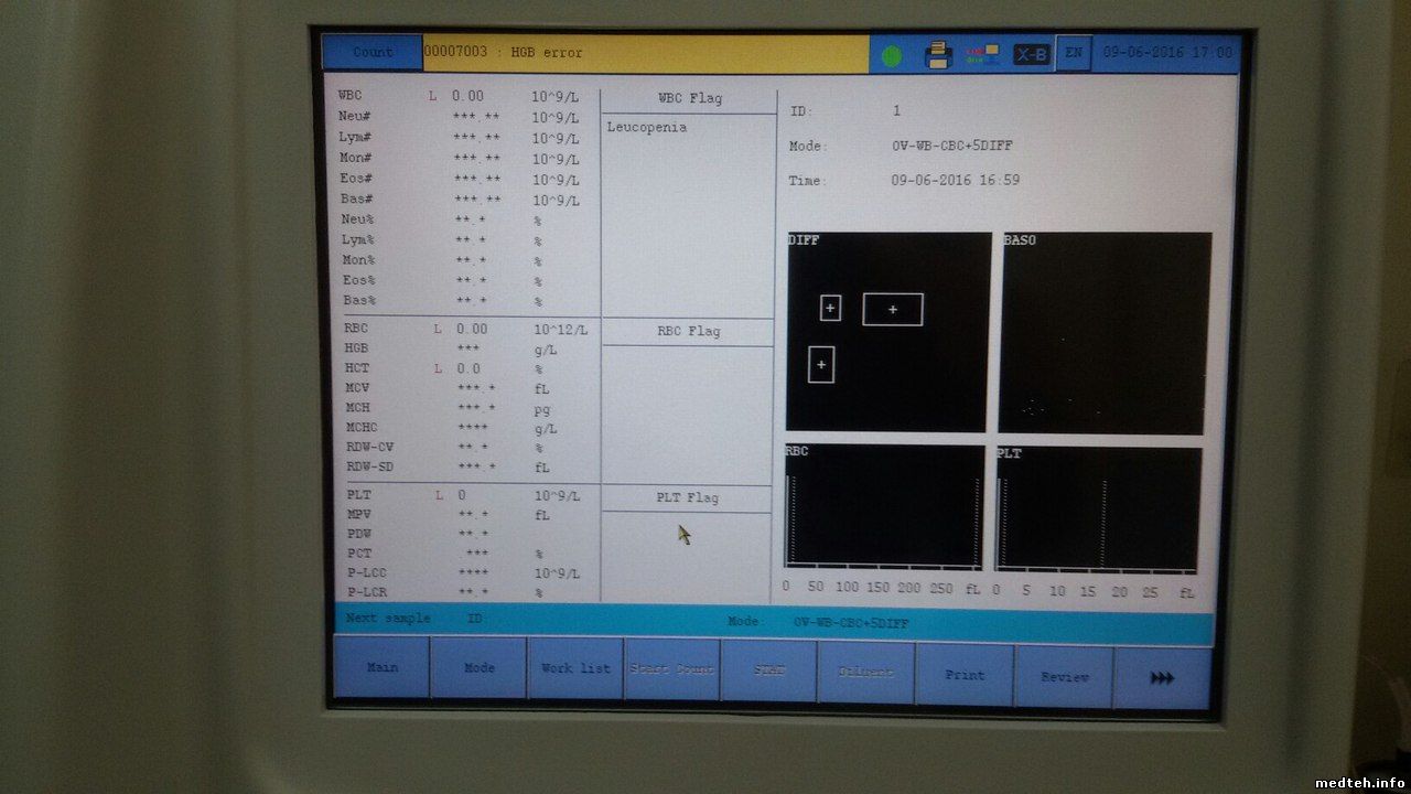 Чаще всего да. Посмотрите на вкладке спец. информация, какие у вас цифры, нужно зайти под сервисом. Ну а причин может быть много: неправильная подача реагентов в камеры diff/baso, крови, перемешивание (не работают миксеры), забиты сливные трубки из проточной ячейки, работа пережимных клапанов до проточной ячейки и т.д.