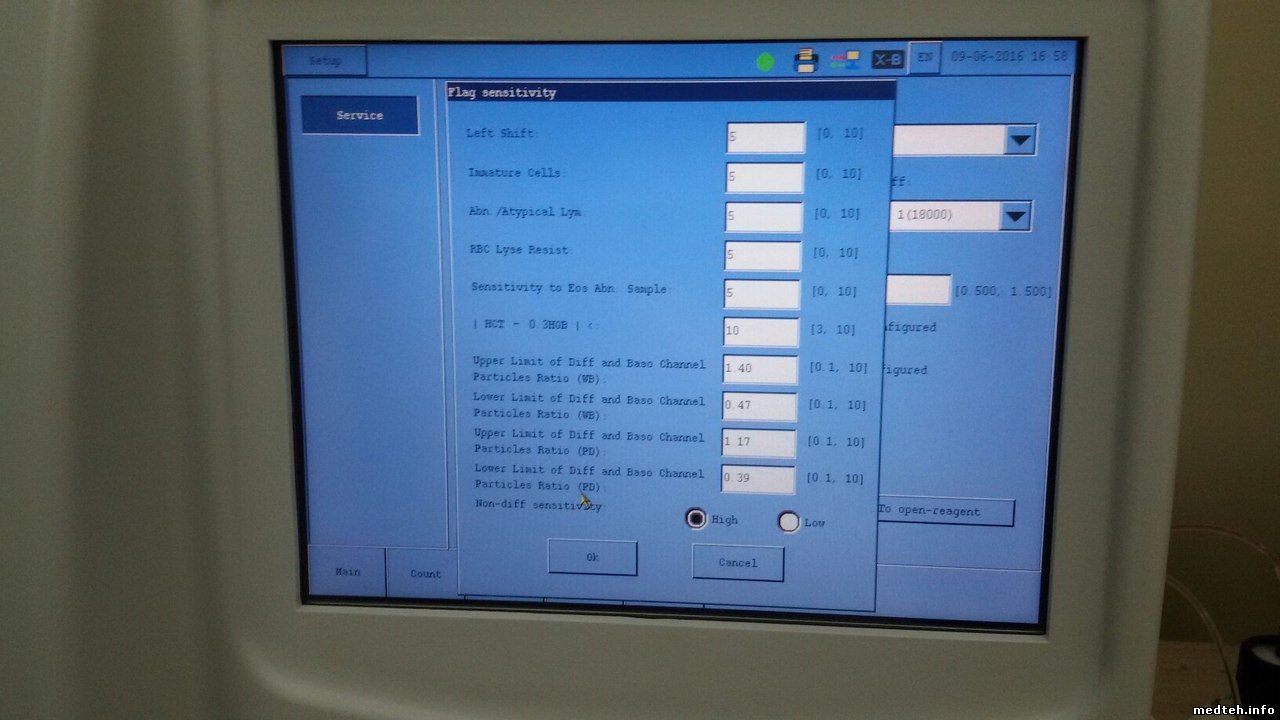 Добрый день. На 5800 миндрей не выдает лейкоциты через раз. Аппарат в ручную хлоркой промыл несколько раз. Клапана проверил. Все равно нет стабильности результатов. Для того чтобы выставить gain необходим пароль для service. На скатерограммах если не выдает wbc вот такая картина как зайти в 5800 в настройку gain?