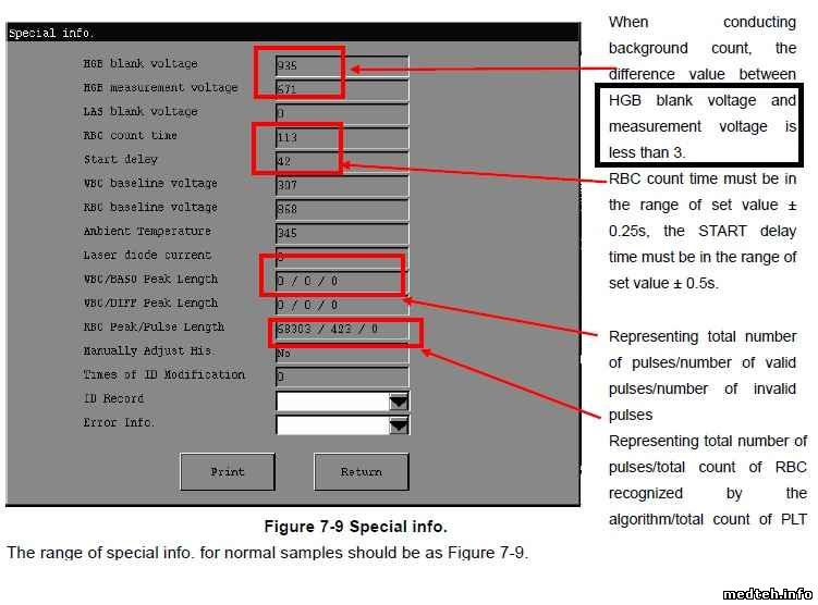 Сегодня добрался до анализатора, вчера не получилось. Чтобы посмотреть special info нужно войти под сервисным паролем и перейти к просмотру проб. Вывести фон или пустое измерение в графическом виде, нажать >>> в правом нижнем углу. Нажать кнопку "Специал.". Вас интересуют две верхние строчки. Цифры должны совпадать (могут отличаться на несколько единиц). Что могу еще посоветовать... Со всем что написано выше коллегами согласен, про пузыри и бочонок. К Предлагаю вариант, чтобы удостовериться что это не пузыри дают такой эффект, и не растворы. В первом случае можно пережать верхнюю трубку на бочоноке (или отключить ее на время, а вход на бочонке заглушить). Если дело не в перемешивании, то можно внимательно посмотреть как происходит измерение, после этого отключить трубку, подающую раствор в камеру (надежно закрепить ее в стаканчике, чтобы раствор не протек на платы или куда-то еще) и попробовать вручную залить дилюент в измерительную камеру. Перед тем как все это пробовать, выложите ваши результаты по пустому измерению, может что-то станет ясно. Возможно у вас какая-то проблема с электроникой и к примеру Холостое напряжение HGB вообще не измеряется.