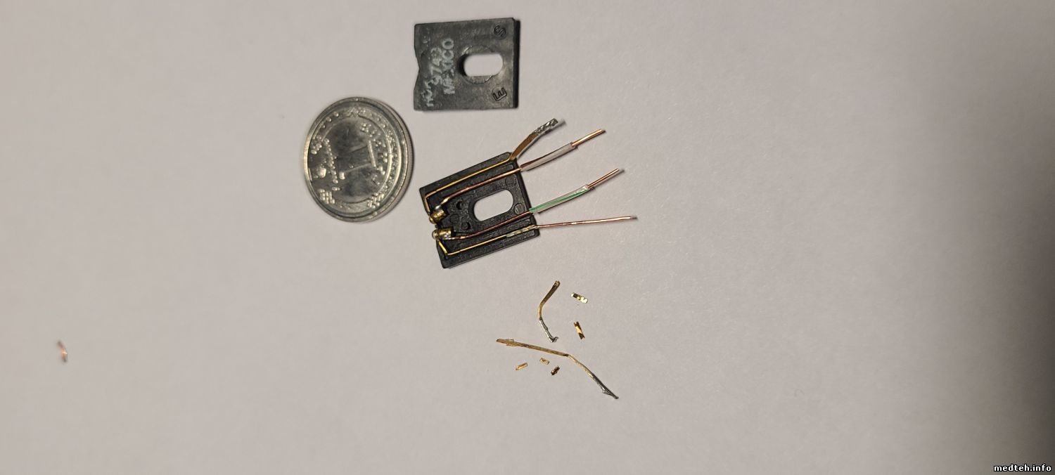 В одном случае, проблема была в ножках датчика HOA1160-100, которые просто сгнили внутри корпуса. Это удивительно, но они сделаны из чёрного металла с золотым покрытием (или похожим). Корпус датчика раскрыл, их допаял медной проволокой (фото 1), проверил, ИК-диод и фототранзистор, всё работает.