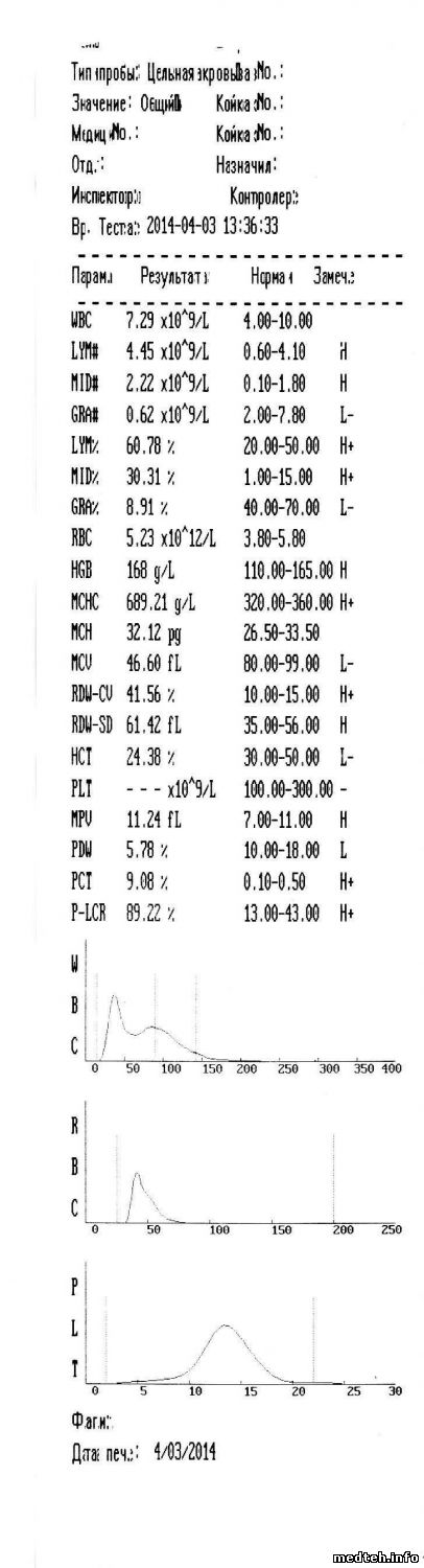 Так например, сильно завышено MCHC(раза в 2)