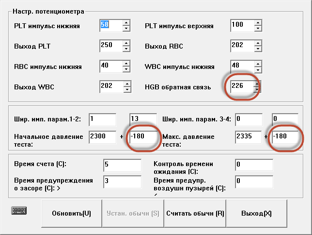 При измерении бланка фон нулевой, апертуру RBC промыл гипохлоритом, реактивы заменены. При первоначальной диагностике было выявлено, что пережата трубка, идущая от вакуумного шприца к датчику давления на плате(возможно заводской недосмотр), поэтому возможно калибровка давления неверная.
