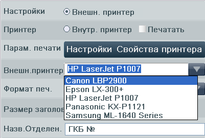 "4) Со своими приборами в качестве внешнего принтера поставляем Samsung ML-2160. Раньше поставляли Samsung ML-16__ Все модели Samsung прекрасно работали, при условии установки оригинальных картриджей. В лабораториях сами клиенты просили подключить чаще принтеры HP разных моделей. Были Epson LX-300 II Plus. Список принтеров, для которых ставились драйвера производителем следующий: Samsung ML-1640, ML-1660, ML-1665, ML-1670, ML-1675, ML-1677, Canon LBP2900, LBP6000 "