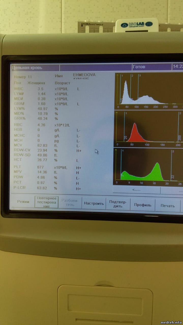 посмотрите пожалуйста на скриншот с результатом. Если у пациента низкий гемоглобин то результаты HGB, MCHC и MCH уходят в 0.