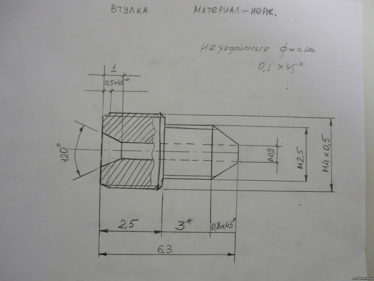 У нас вообще история интересная была. Медики сломали пополам втулку, которая одним концом сидит в этом Valve, на другой конец резьбы накручивается цилиндрический держатель иглы. Выточили, вклеили. Всё вроде нормально. А иголка вот такая как на фото. Чертёж втулки на всякий случай прикреплю - может кому пригодится.