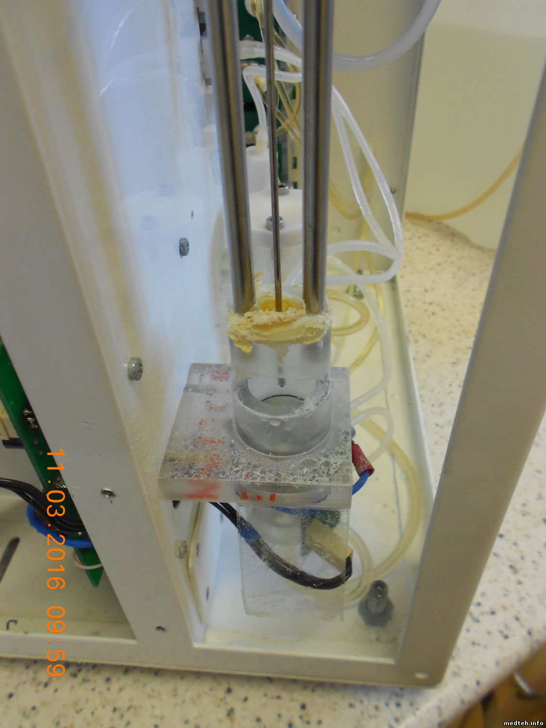 Товарищи, призываю обратить внимание на плановую замену запчастей (можно даже расходниками назвать), не только данного анализатора, но и в целом серьёзно к этому отнестись. На данном фото результат, очень плохого ТО аппарата и экономия на замене уплотнителя омывателя, по плану раз в квартал меняется (стоимость 1k где-то, могу уточнить*), но по факту раз в пол года вполне хватит, опять же всё зависит от выработки.