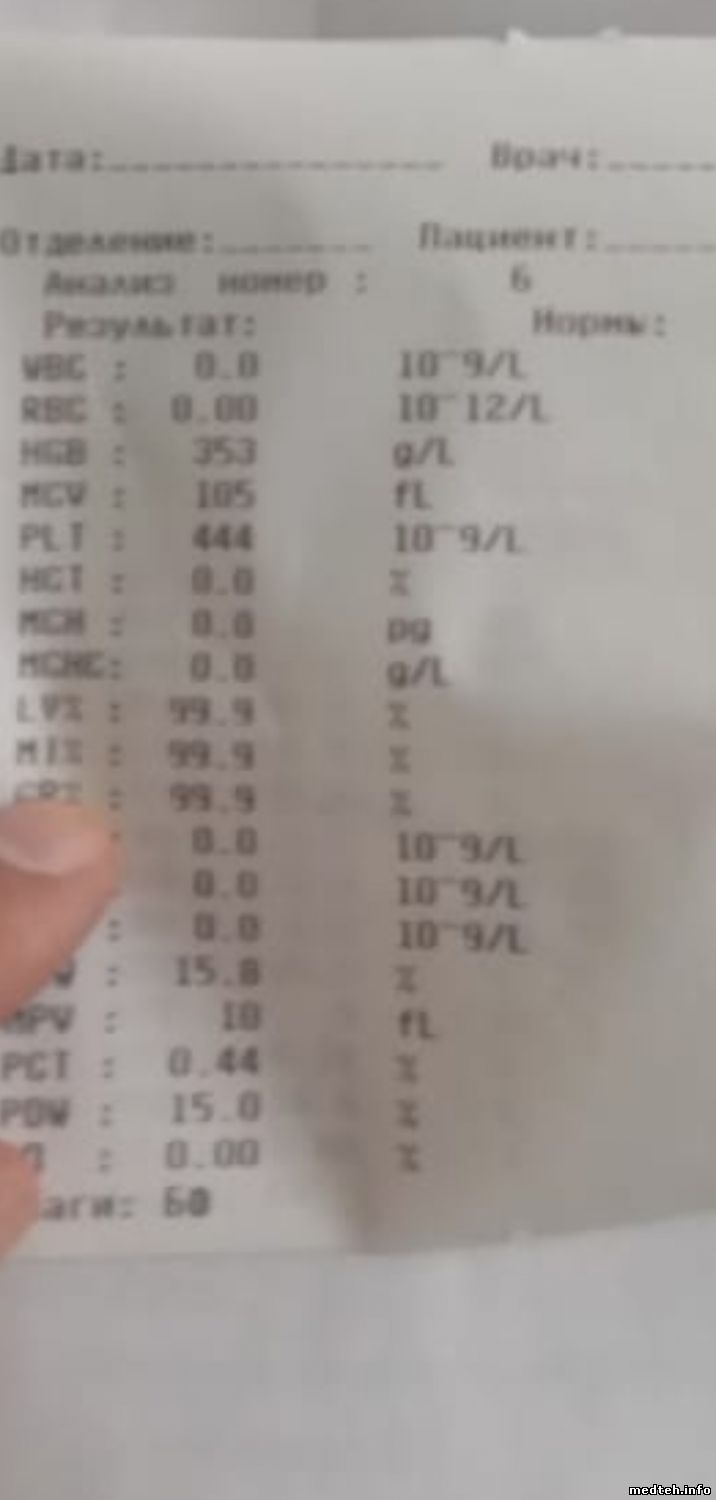 Перелив камеры. Коррозия светодиода или платы (при включении не подсвечивается), либо фотодиода или платы. Перелив бывает из-за изношенной трубки подачи дилюента (характерно для 4-х насосных). Номер прибора? Насосов 3-и или 4-е? Тромбоциты могут тоже из-за этого.
