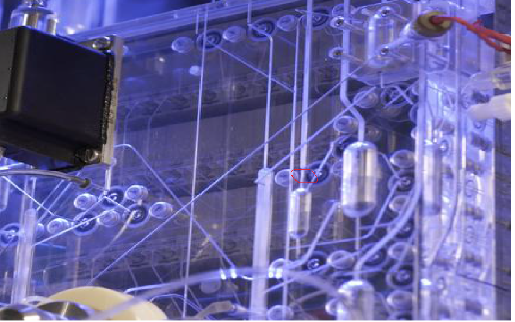 Разбирать юфс - с ума сойдешь. Пробуй отмачивать гипохлоридом 25%, открывай клапаны 21,22, рано или поздно протолкнешь А так анализатор красную кровь не измеряет?