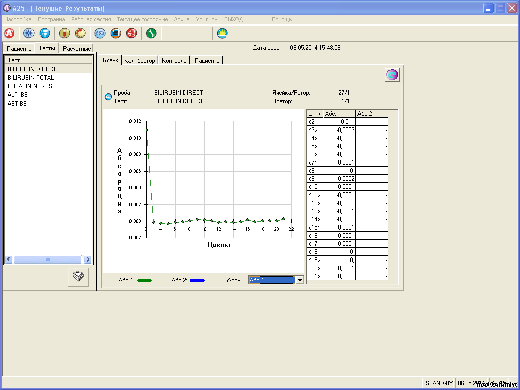 И потом самое главное это то что при контрольной проверке анализатор показывает неверные данные "контрольное значение калибратора ALT" там очень большие цифры и с минусом. Версия программы 2.5.7