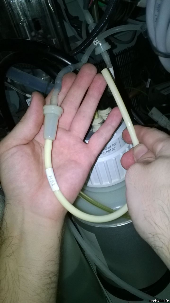 scratch2010 трубка одевается на штуцер, который находится правее контрольной метки соединения термокамеры и кюветного кольца. Он там один. Схема в сервисной- день 4-NO1.